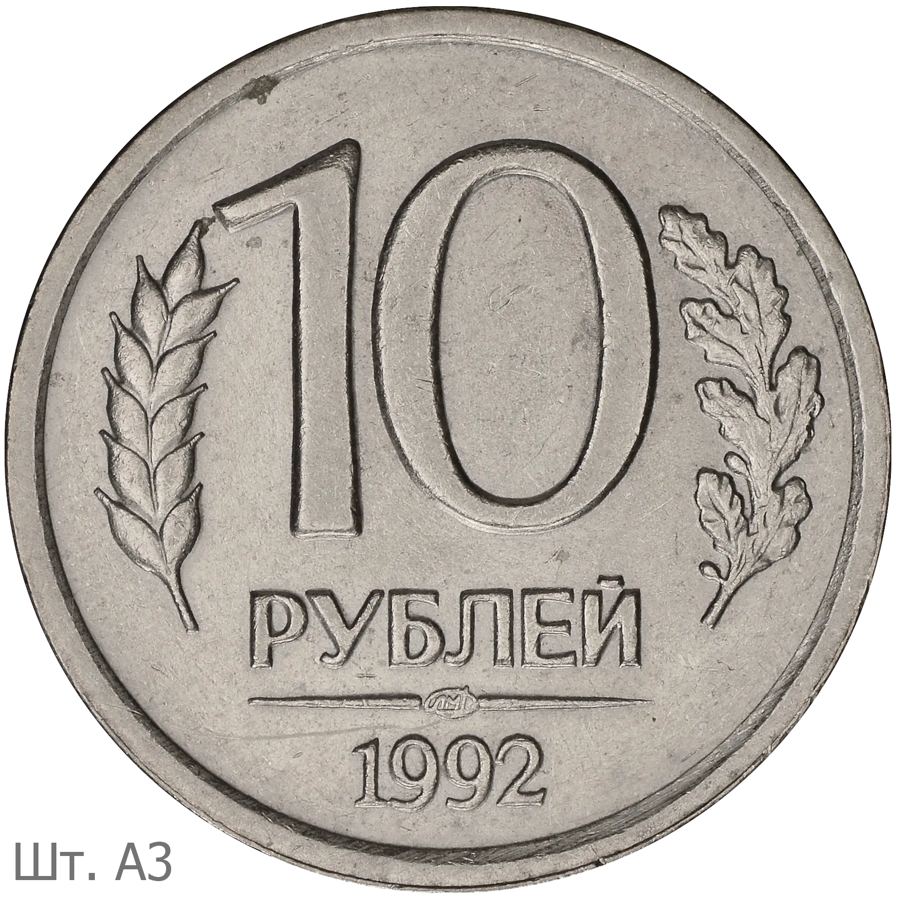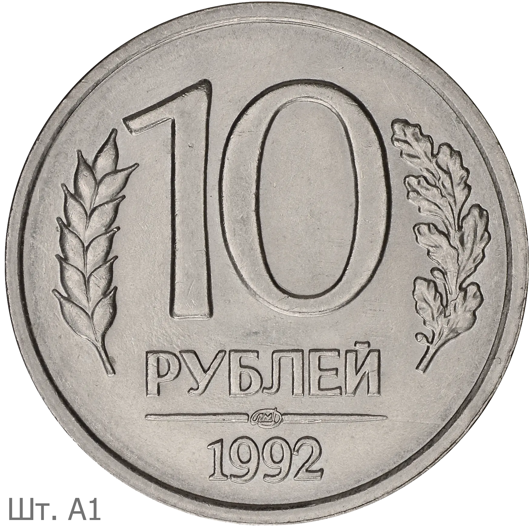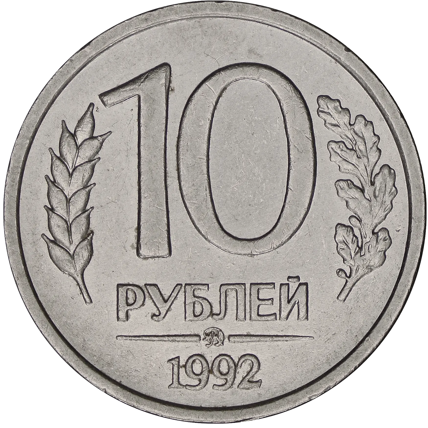 Монеты номиналом 10 рублей образца 1992 находились в обращении с января 1993.