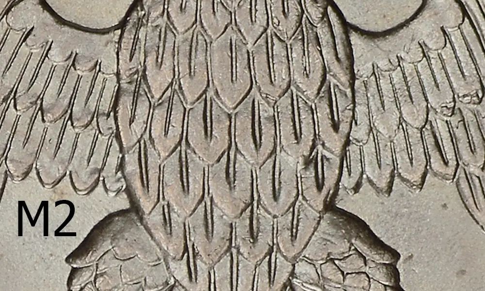 Штемпель 2.2 (ЛМД). Кант чуть уже, элементы приближены к канту. Размер изображения увеличен.