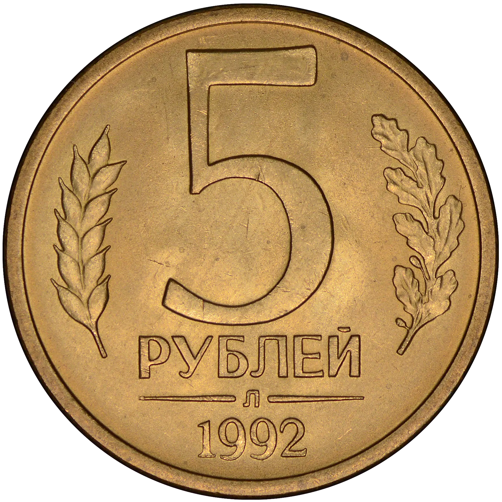 Монеты номиналом 5 рублей образца 1992 находились в обращении с января 1993.