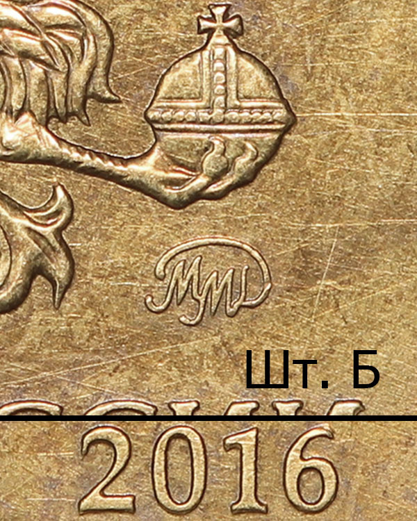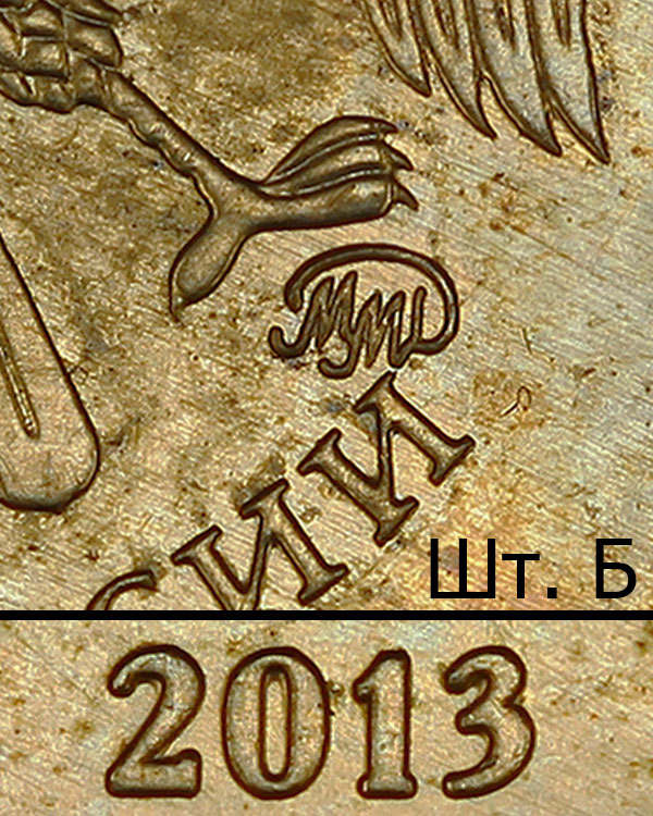 Последующие разновидности первой модели 2010 имеют индивидуальный рабочий штемпель с персональным клеймением пуансоном со знаком ММД. Размеры изображения уменьшены, элементы отдалены от канта в сравнении со шт. А. Размер шт. А плавает в диапазоне 0.5% - 1.0% относительно одноштемпельных вариантов.