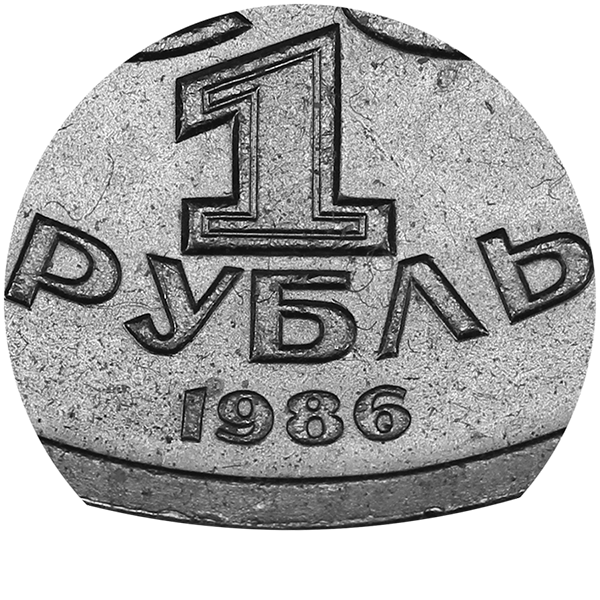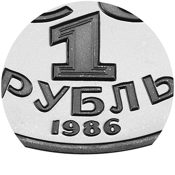 Гурт 3. Надпись "ОДИН РУБЛЬ", повторяющаяся дважды, разделённая прямоугольными точками. Буквы сближены. Буквы "Д" и "Л" узкие, основной штрих букв "Р" и "Ь" длинный, внутрибуквенные просветы уменьшенные (ММД с 1987 по 1993).