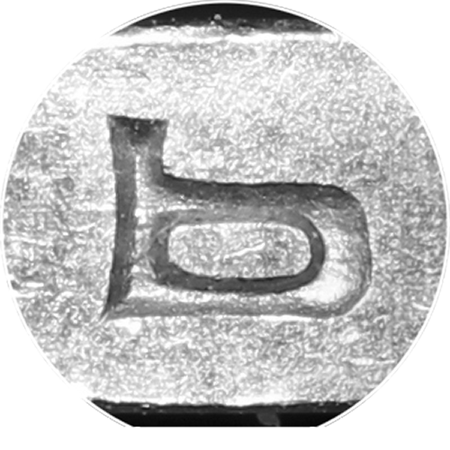 Шт. 86б.1. Буква "Л" прямоугольная, полуовалы букв "Р", "Б" и "Ь" разомкнутые. Горизонтальные элементы букв "Б" и "Л" прямые. Изображение удалено от канта (ЛМД и ММД).