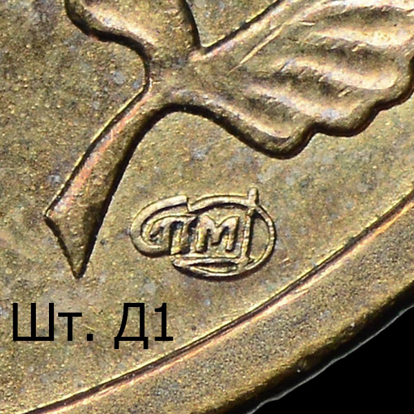 Примечание. Шт. К исключён из списка разновидностей. Структура поля и рельефа говорит о деградации рабочего штемпеля. Прилагаются фото двух монет из-под этой штемпельной пары, на котором видно, как при неизменности в размерах штемпеля реверса, штемпель аверса изменил свои размеры. На текущий момент максимальная известная разница в размерах со штатным шт. Б составляет порядка 2,2%. По-видимому, этот конкретный штемпель крайне неудачно прошёл стадию закалки. При желании можно попытаться найти монету этой шт. пары, когда деградация только-только начиналась.Разновидности аверсов находили Борис Малышев (Богема), Александр (сoins2000), Данил (Chief), Александр (Karatonec). Автор большинства находок и их систематизации Александр Сташкин.