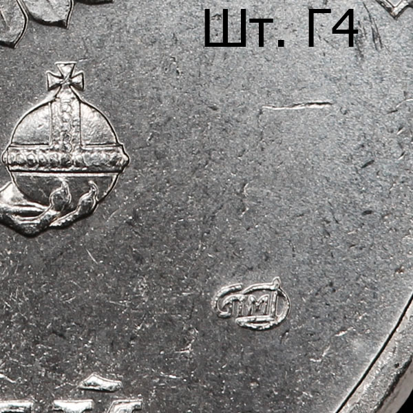 Штемпель Г4. Знак приспущен и смещён вправо в сравнении со шт. Г1.