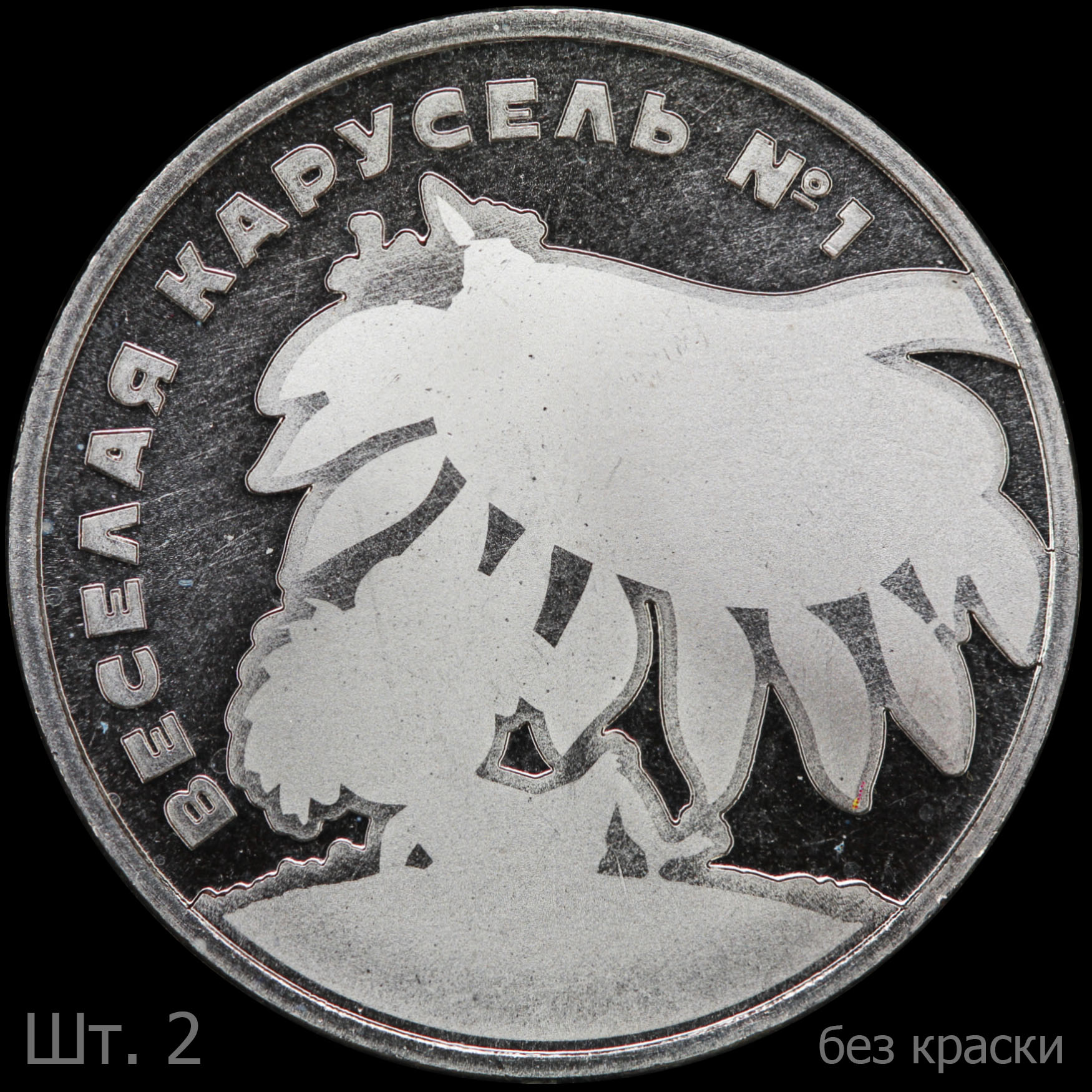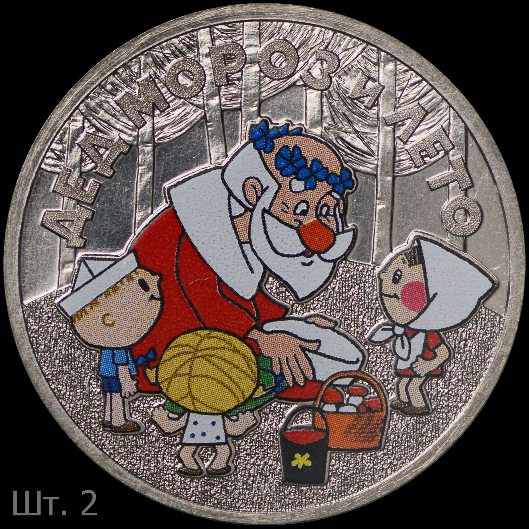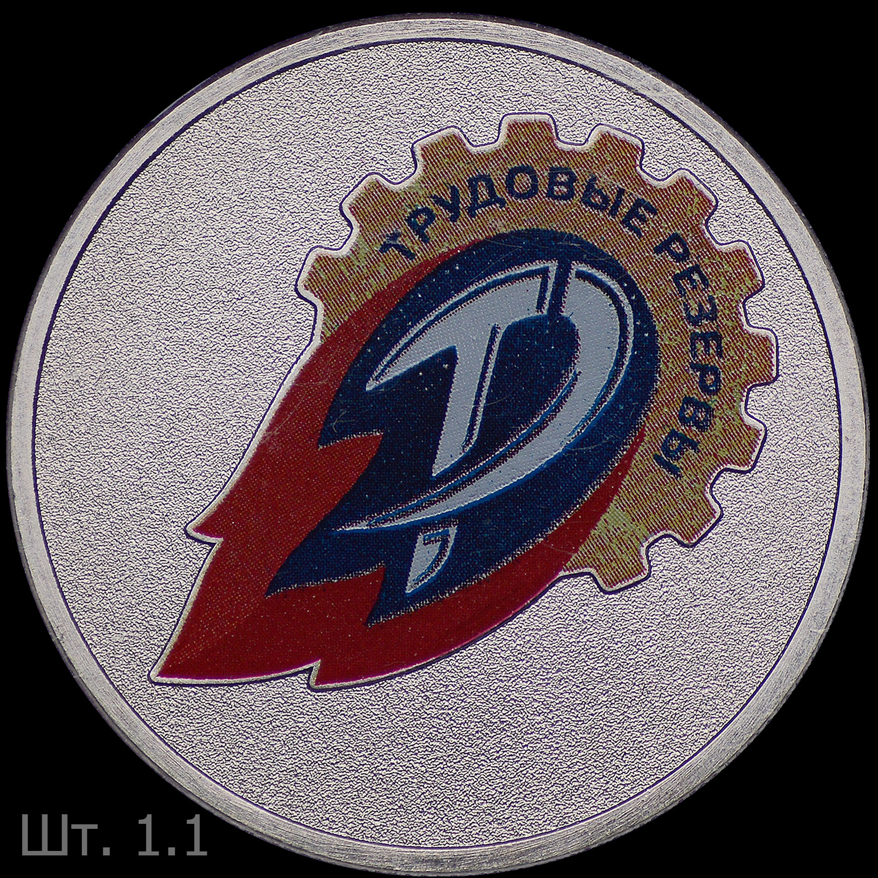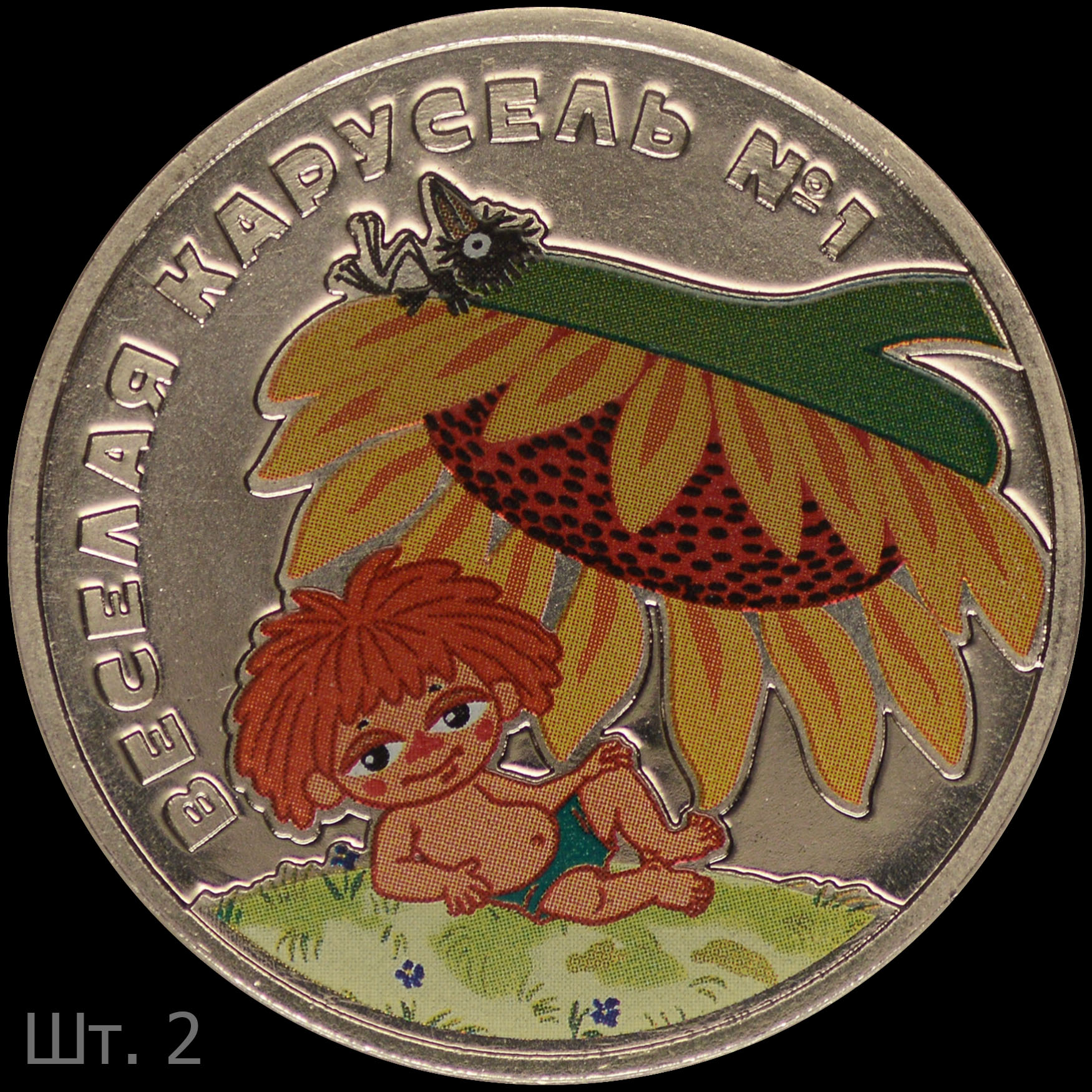 Примечание. Разновидность монеты 2.1Г является образцовым вариантом, в "ообороте" неизвестна. Цветное покрытие на неё наносилось комбинацией из пяти отдельных цветов. На тиражных монетах этого выпуска и далее при тампопечати используется комбинация CMYK цветов.