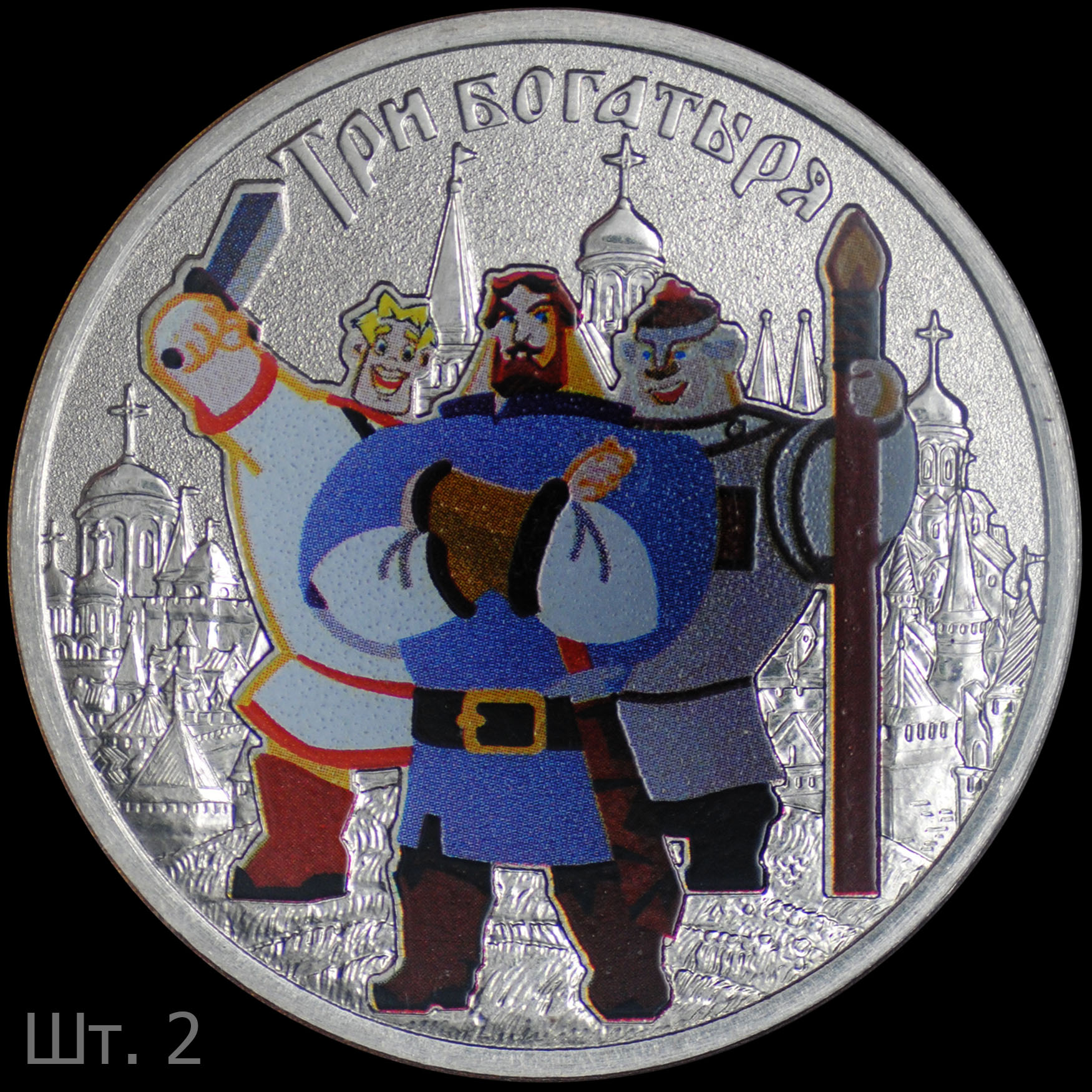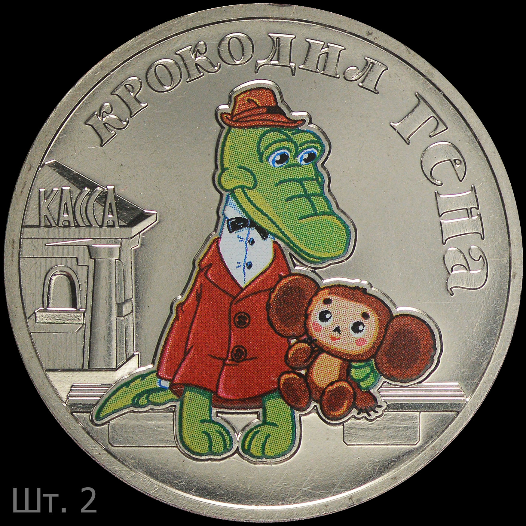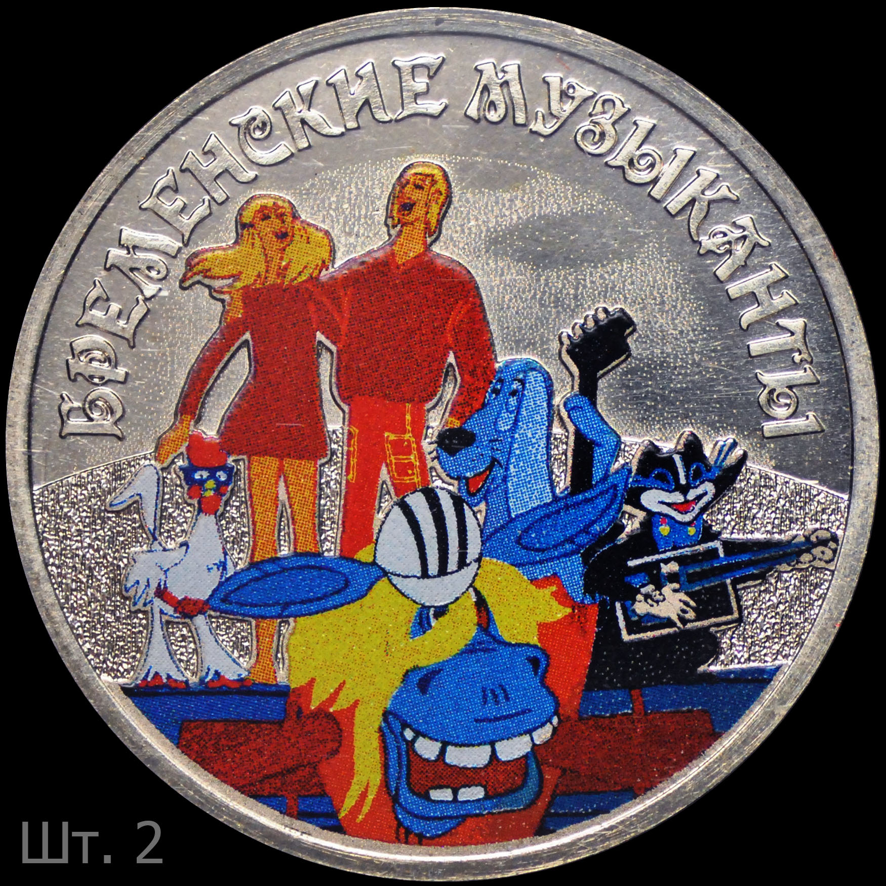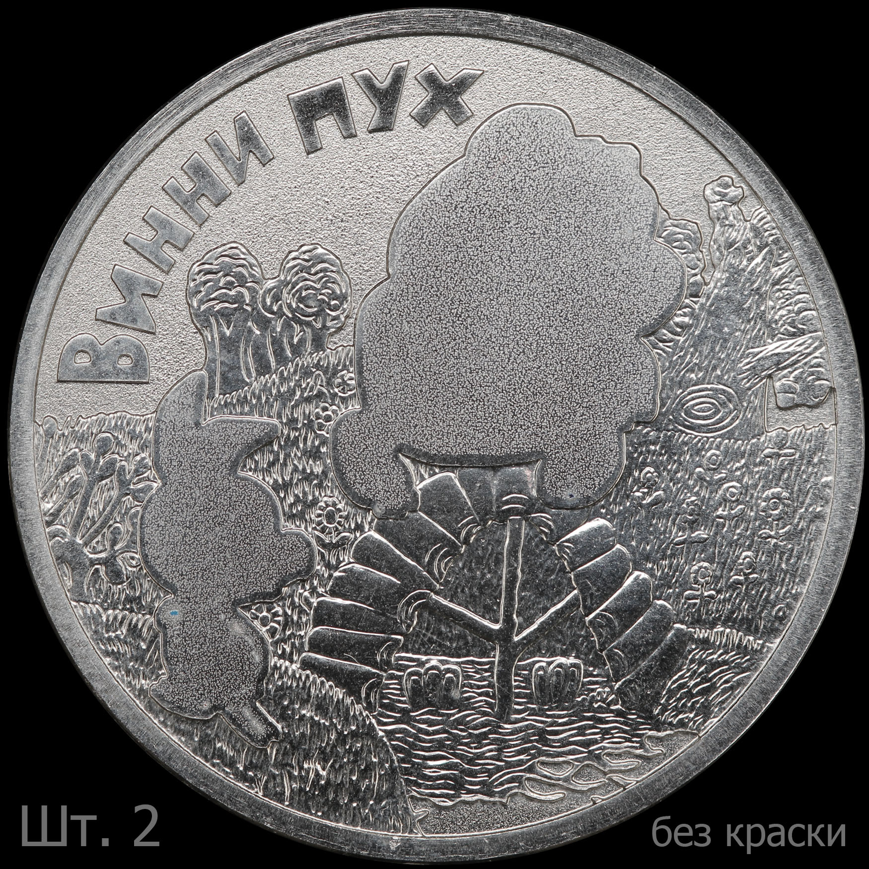 Примечание. Разновидность монеты 2.1Г является образцовым вариантом, в "ообороте" неизвестна. Цветное покрытие на неё наносилось комбинацией из пяти отдельных цветов. На тиражных монетах этого выпуска и далее при тампопечати используется комбинация CMYK цветов.