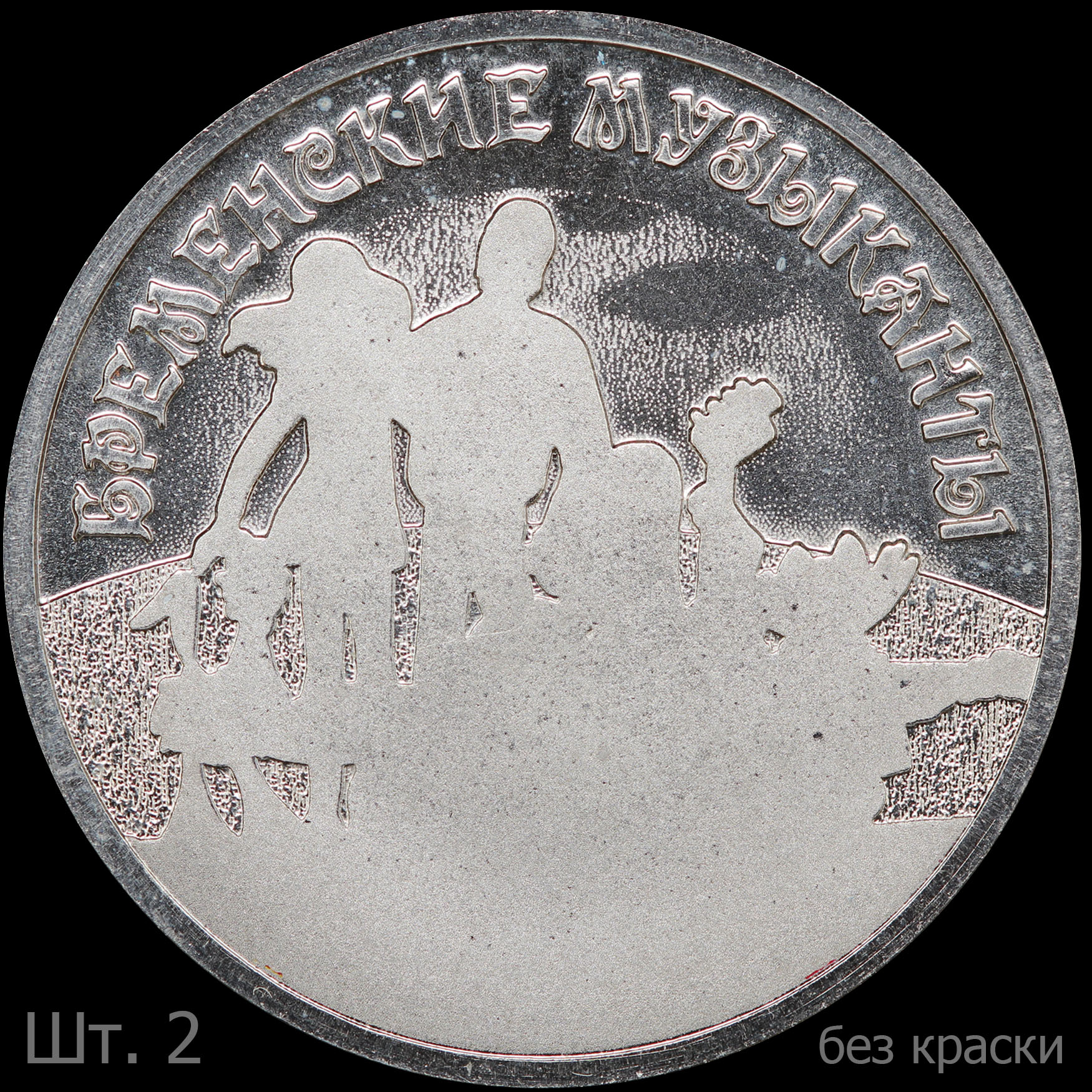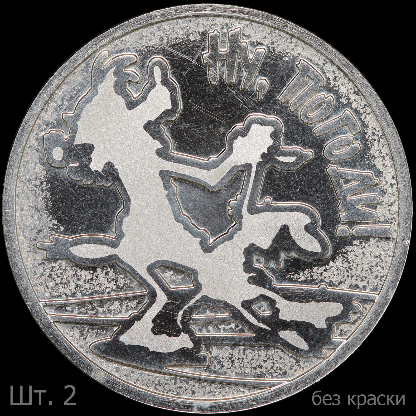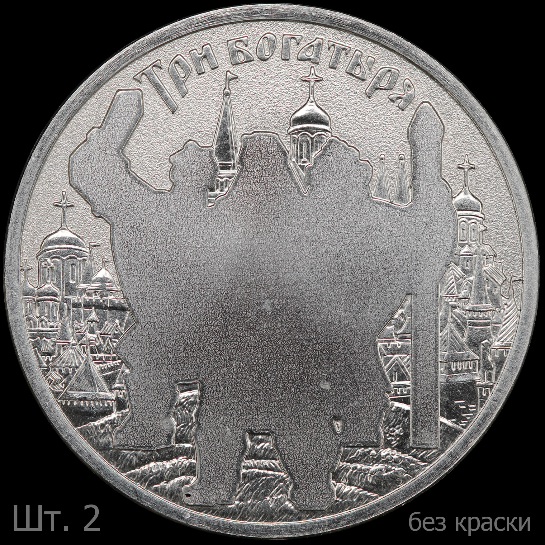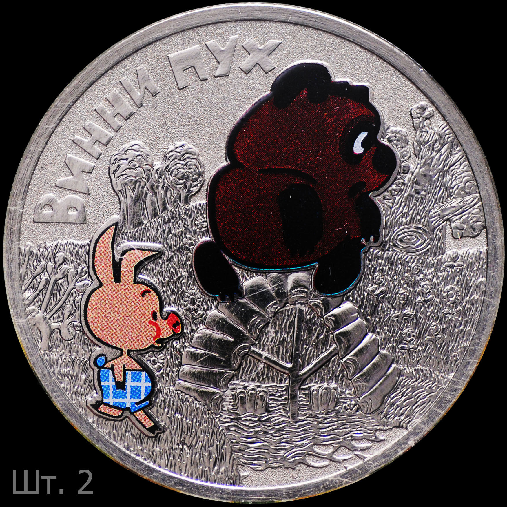 Примечание. Разновидность монеты 2.1Г является образцовым вариантом, в "ообороте" неизвестна. Цветное покрытие на неё наносилось комбинацией из пяти отдельных цветов. На тиражных монетах этого выпуска и далее при тампопечати используется комбинация CMYK цветов.