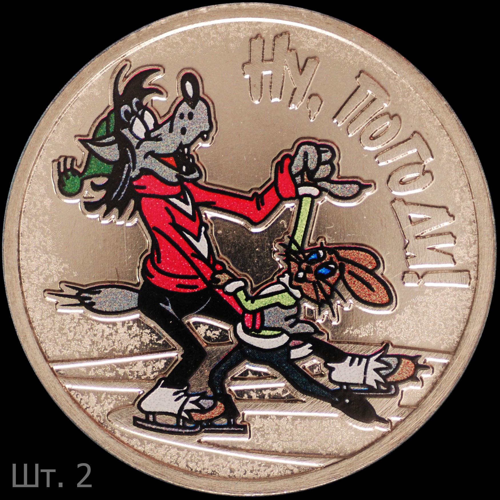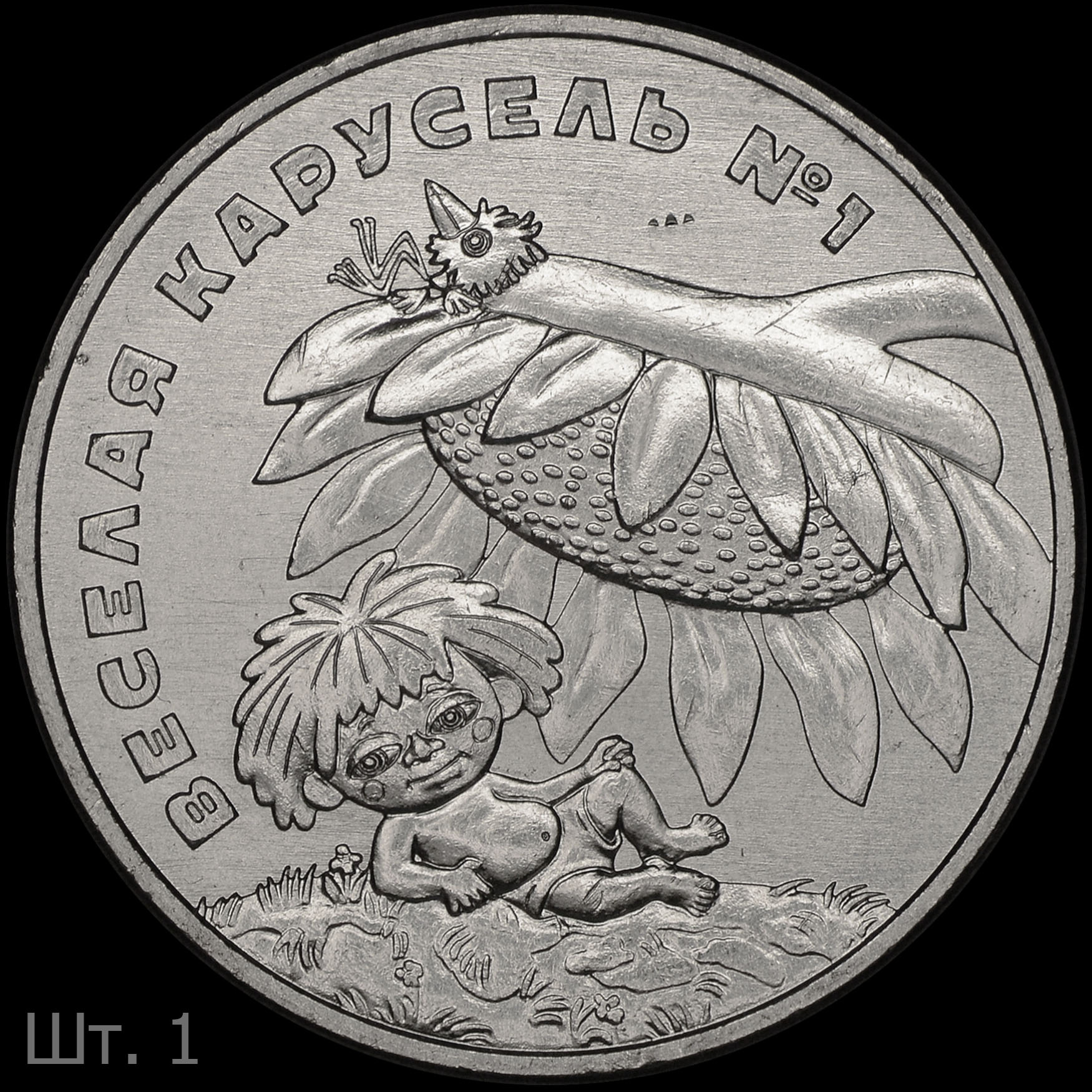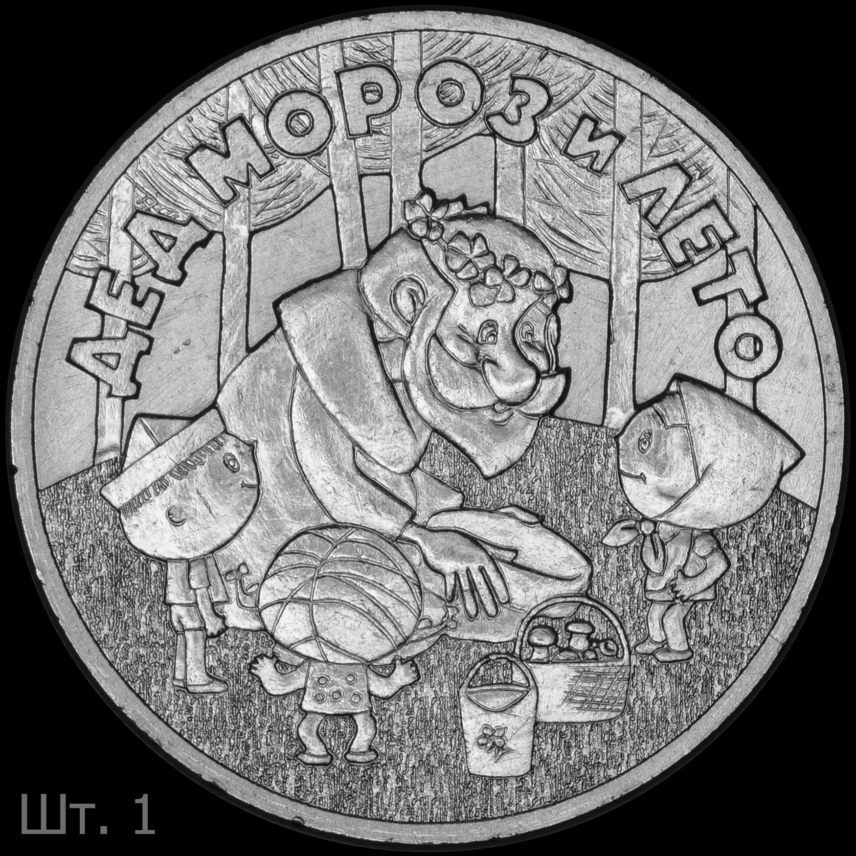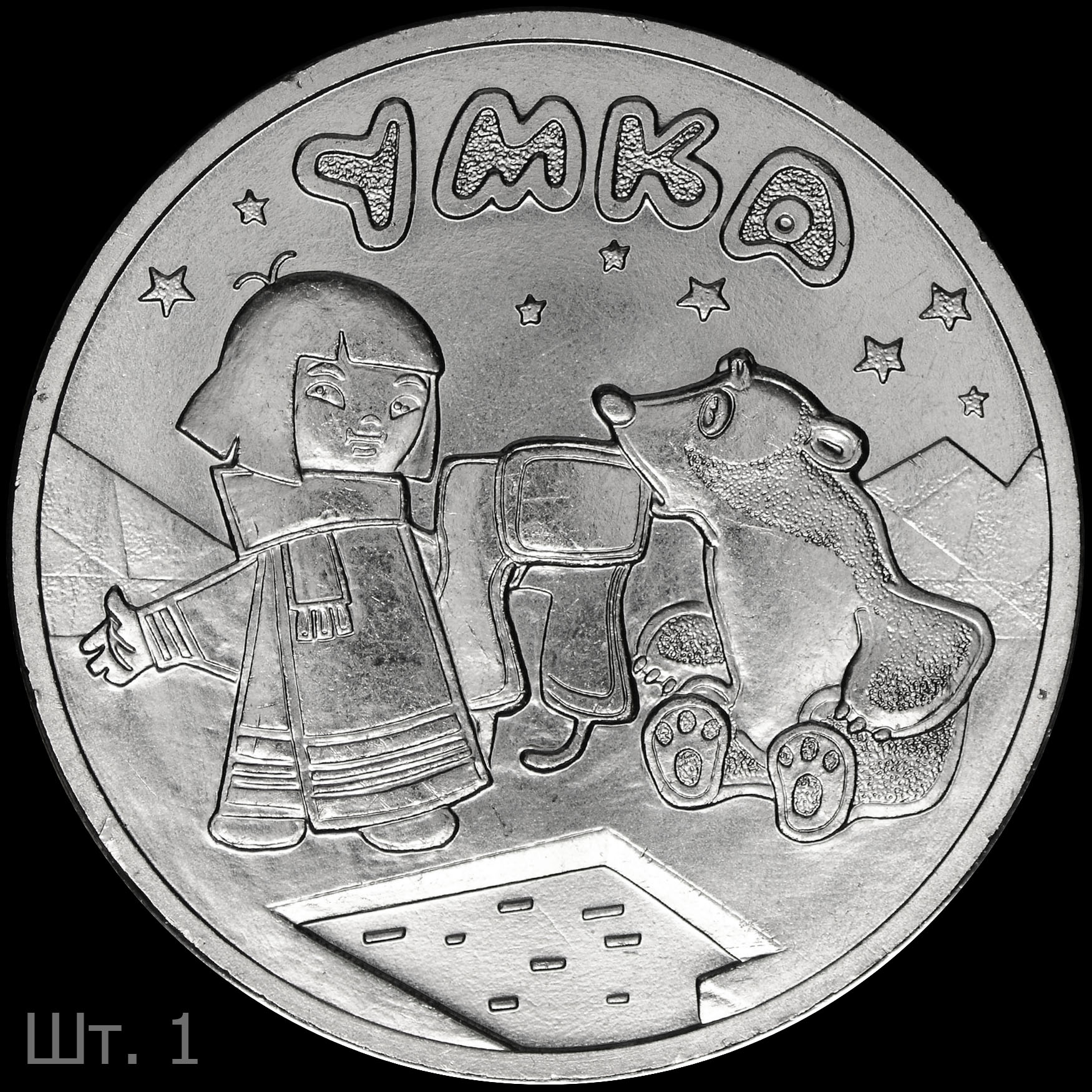 Примечание. Разновидность монеты 2.1Г является образцовым вариантом, в "ообороте" неизвестна. Цветное покрытие на неё наносилось комбинацией из пяти отдельных цветов. На тиражных монетах этого выпуска и далее при тампопечати используется комбинация CMYK цветов.