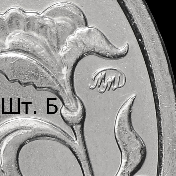 Примечание. В сочетании со шт. Б нахождение в обороте не зафиксировано. Монета с этим реверсом представлена в галерее образцовых монет.