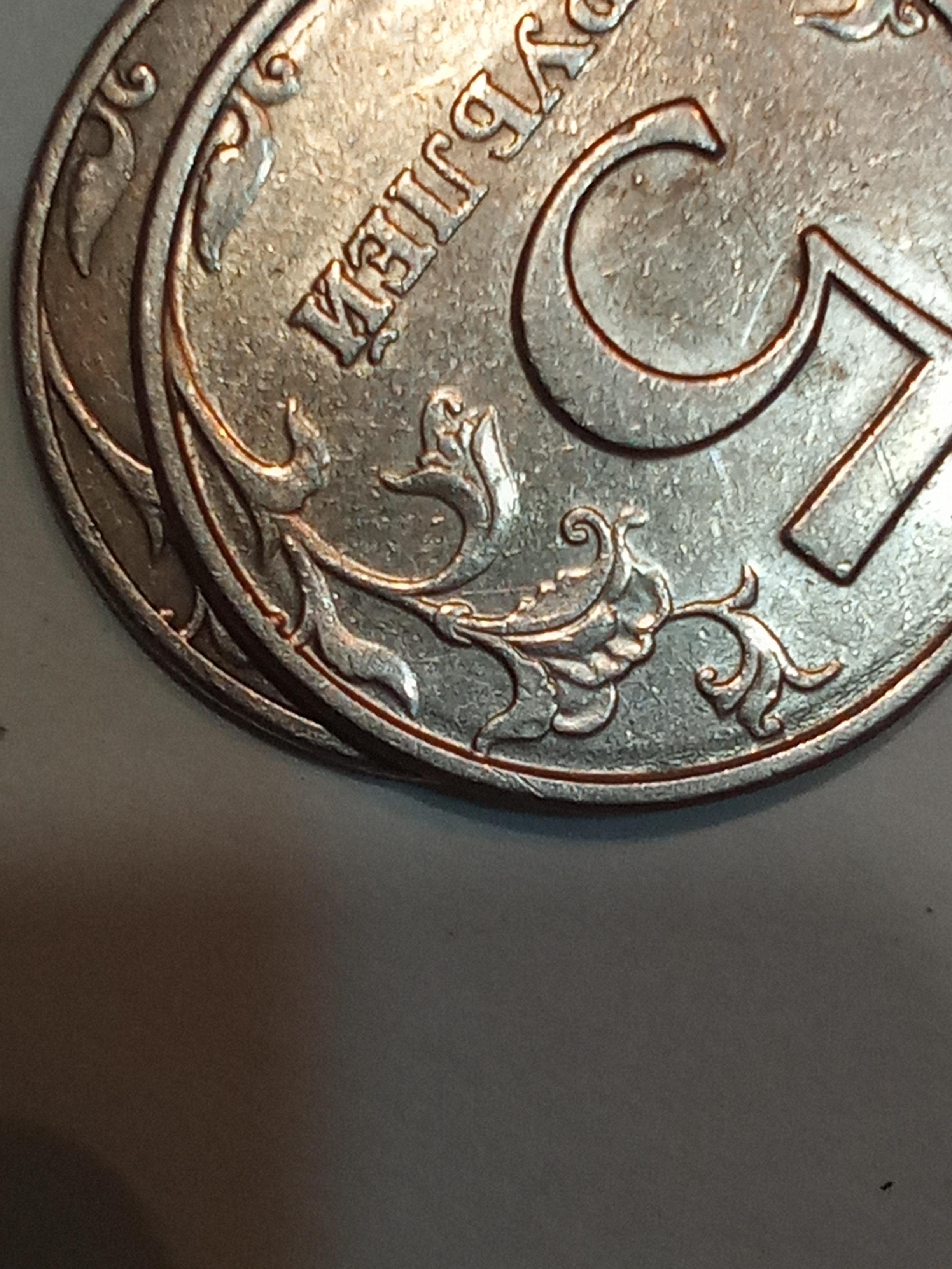Выкрошка левого угла пятёрки. Находил такую монету два раза. Причем последнюю летом. Отправил в оборот.