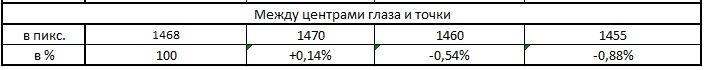 Вот, что получилось между центрами глаз и точкой: 0,5% - можно в оборот!