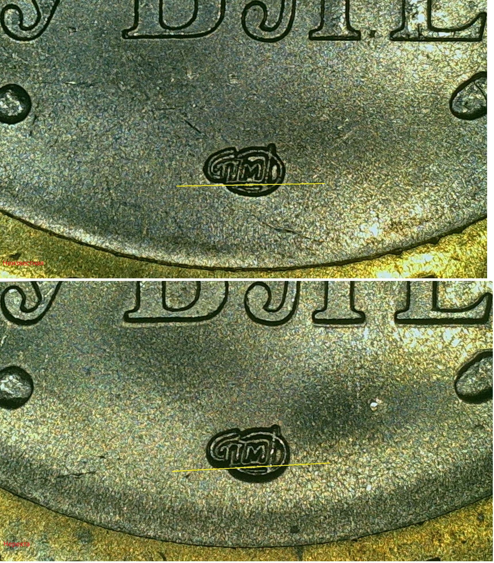 Вижу два разных вида гравировок минтмарок на различных монетах, об этом писал выше. Основное, чётко определяемое отличие - подход верхней дуги "Д" к верхней перекладине "П".