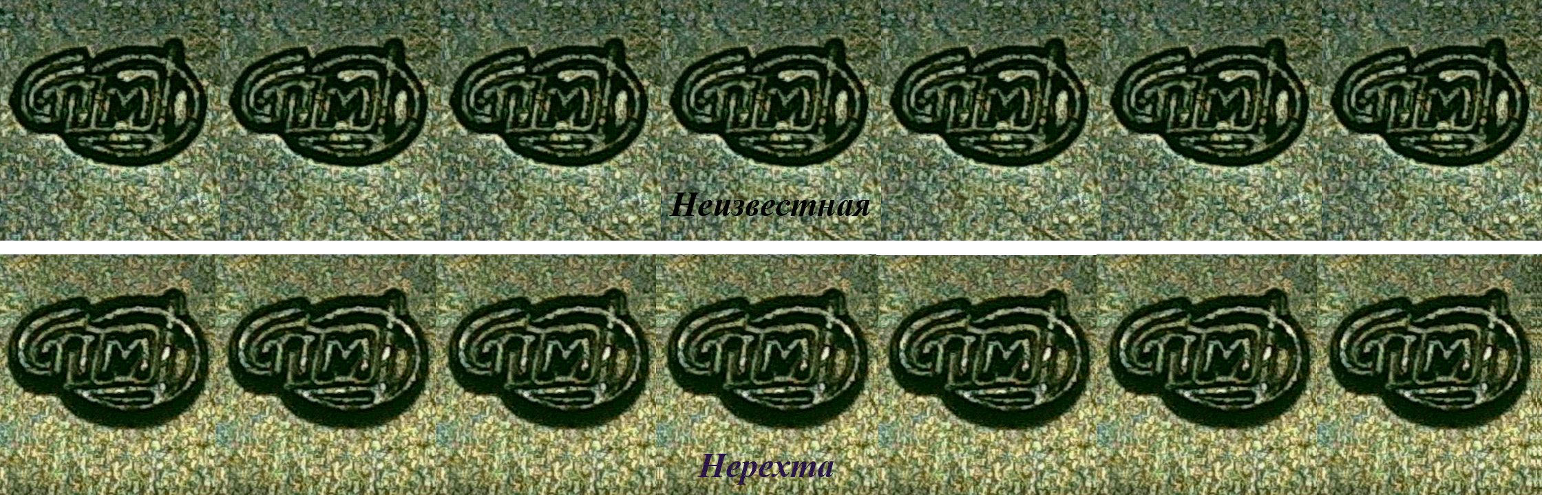 В этих двух высота рельефа разная, это правда! :) Но там форма окончания левой стойки "Л" (у Нерехты больше на шарик похожа) и наклон нижней перекладины "Д" в минтмарке разный.