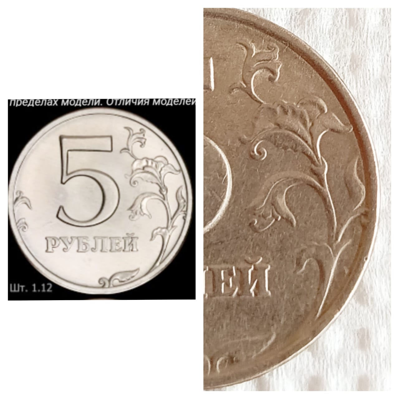 Здраствуйте помогите определит штемпел 5 рублей 1998 мм я сравнил с штемпел 1.12 очен разное и в левом и в правом стране видно внимательно посмотрите
