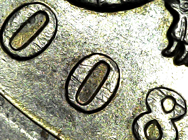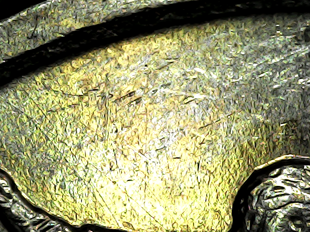 Нашёл гравированную точку. Но на поле монеты такое огромное количество линий шлифовки, что глаза теряются. Не знаю за что зацепиться. Впервые вижу монету с таким количеством явных линий шлифовки.
