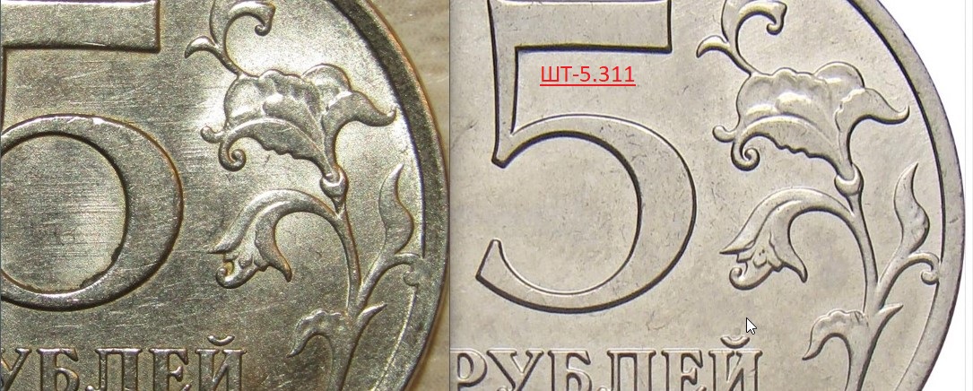 Мне кажется, что можно посмотреть на положение душки буквы Й. У штампа 5.311 душка лежит на букве, а у вашей монеты она отдалена.