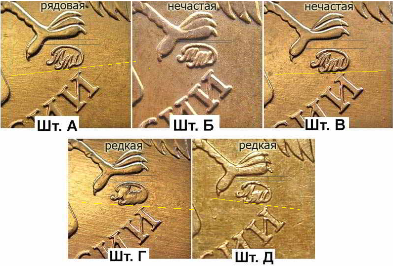 Разобрался в принципе по 5 основных видов аверса по положению знака Московского монетного двора, особенно смущал Шт.А . Вот залил - всё понятно. Я не спец, но всегда была проблема с оборотной такой :roll: