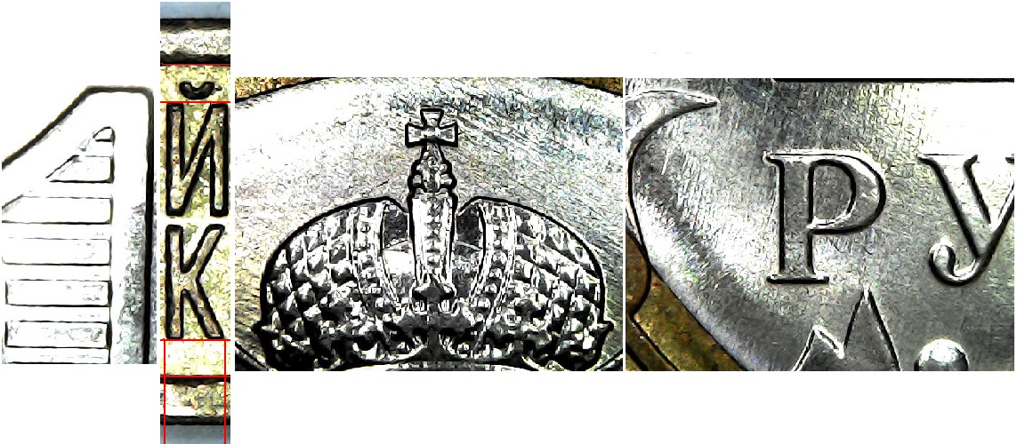 Евгений, благодарю за фото! Ваши фото прекрасные, но монета шт.1.2А3 - обычная. В статье, в основном, показаны отличия монеты шт.1.1А3, у которой, буква Й намного дальше от канта, а от канта до ножек буквы К, должна(если провести некоторые графические линии, показаны в данной статье) образоваться геометрическая фигура в виде КВАДРАТА, а у вашей ПРЯМОУГОЛЬНИК, тем более у вас есть такие возможности. На моих фото это наглядно видно. Монета с таким шт. не очень частая. Ищите. С уважением.