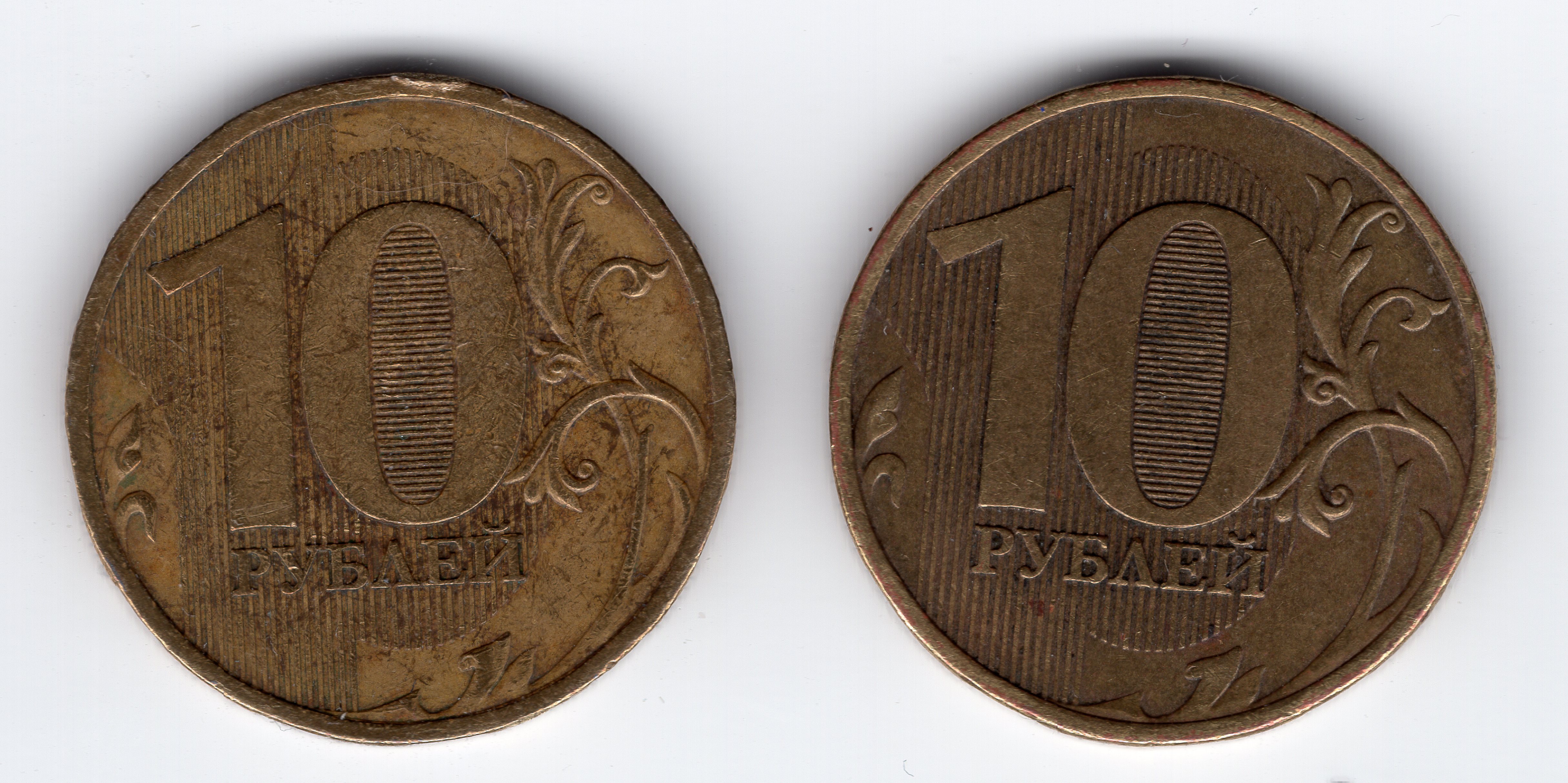 Здравствуйте! Прошу помощи в определении Шт. по Аверсу, Знак МД на правой монете меньше чем на левой, изображение отдалено от канта. Не похожа на монеты что в каталоге.