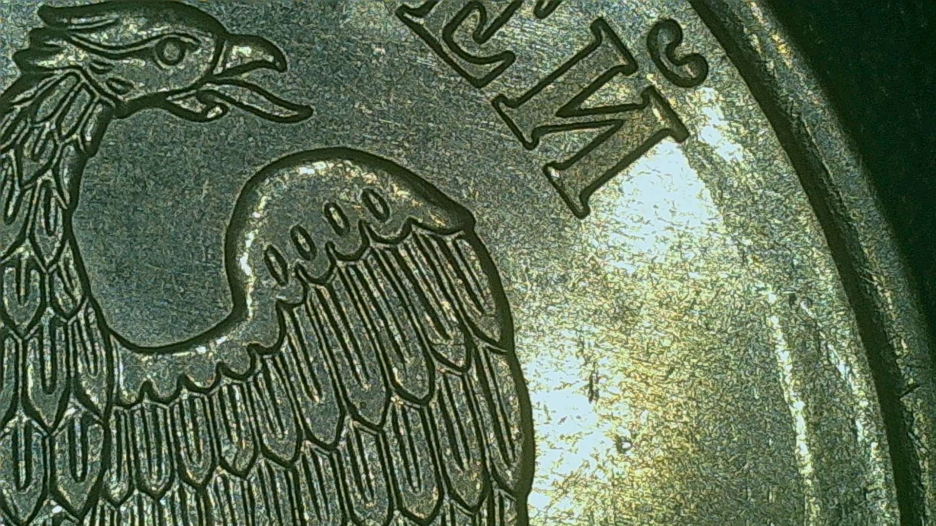 В монетах темы шрифт ещё почти идеальный, а кромка на столько сильно (и ровно) разрушилась! Как-то не нормально это.