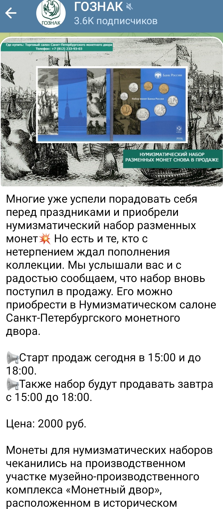 Ну как поговаривают. Я пришел где-то за час. Уже была очередь в районе 50 человек, к 15 часам было по ощущениям человек сто. Пока стояли, из салона потихоньку выходили гознаковцы с наборами. Но небыло такого чтобы брали прям сотнями штук. Обычная продажа своим до общего старта. Примерно минут за 10 до 15:00 вышел представитель салона, и объявил, что по указанию генерального директора продаж не будет. Будут завтра, стоимость 4000. На вопрос по сколько продавали своим, честно ответил что по 2000. Дальше музей разместил такое объявление, а пресслужба такое.