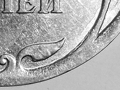 Всё больше прихожу к мнению, что если есть видимые изменения (искажения, нарушения) канта, то лучше эту монету пустить в оборот. По любому будут искажения изображения, либо в масштабах, особенно в зонах разрушения канта, либо другая степень подхода элементов к канту и т.д.Вот, к примеру, такие же признаки можно увидеть: