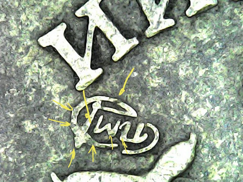 По совету, прошелся по монете порошком. Судя по всему выкрошка. Может кому в обороте опять попадется.