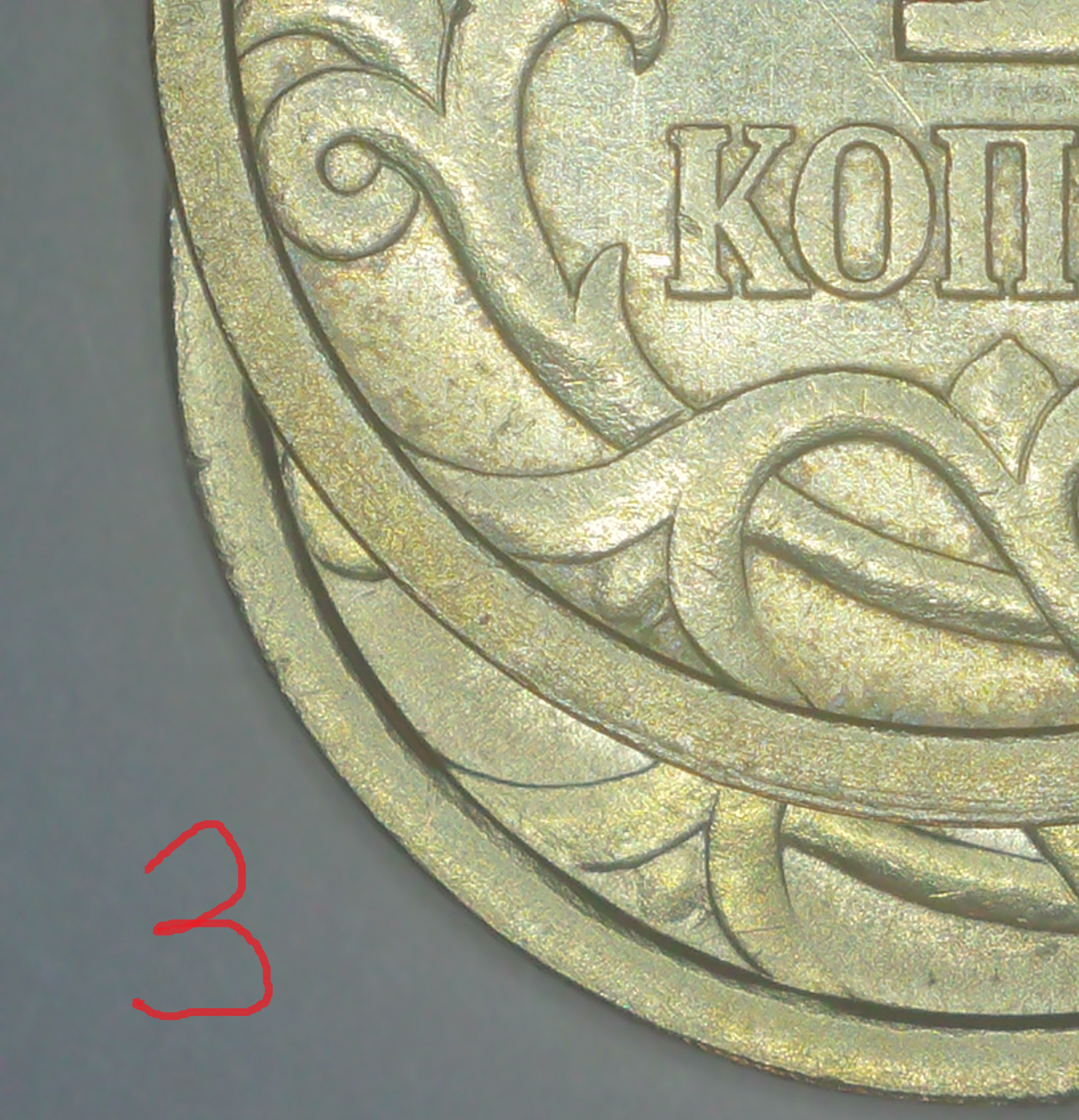Сделал фото этих двух монет, верхняя шт.1,12, нижние монеты вторая и третья(подписал их). Левая окантовка бутона практически отсутствует.