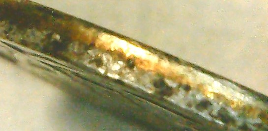 Сегодня мне попалась монета 5 копеек 2007сп с интересным гуртом, похожем на гурт стальных монет 10 копеек, плакированных латунью, хотя цвет Реверса и Аверса, представленной Вам на рассмотрение монеты, светлый. От чего на гурте по всей окружности такой след, похожий на латунную плакировку? Выскажите, пожалуйста Ваши мнения. Спасибо! С Уважением,