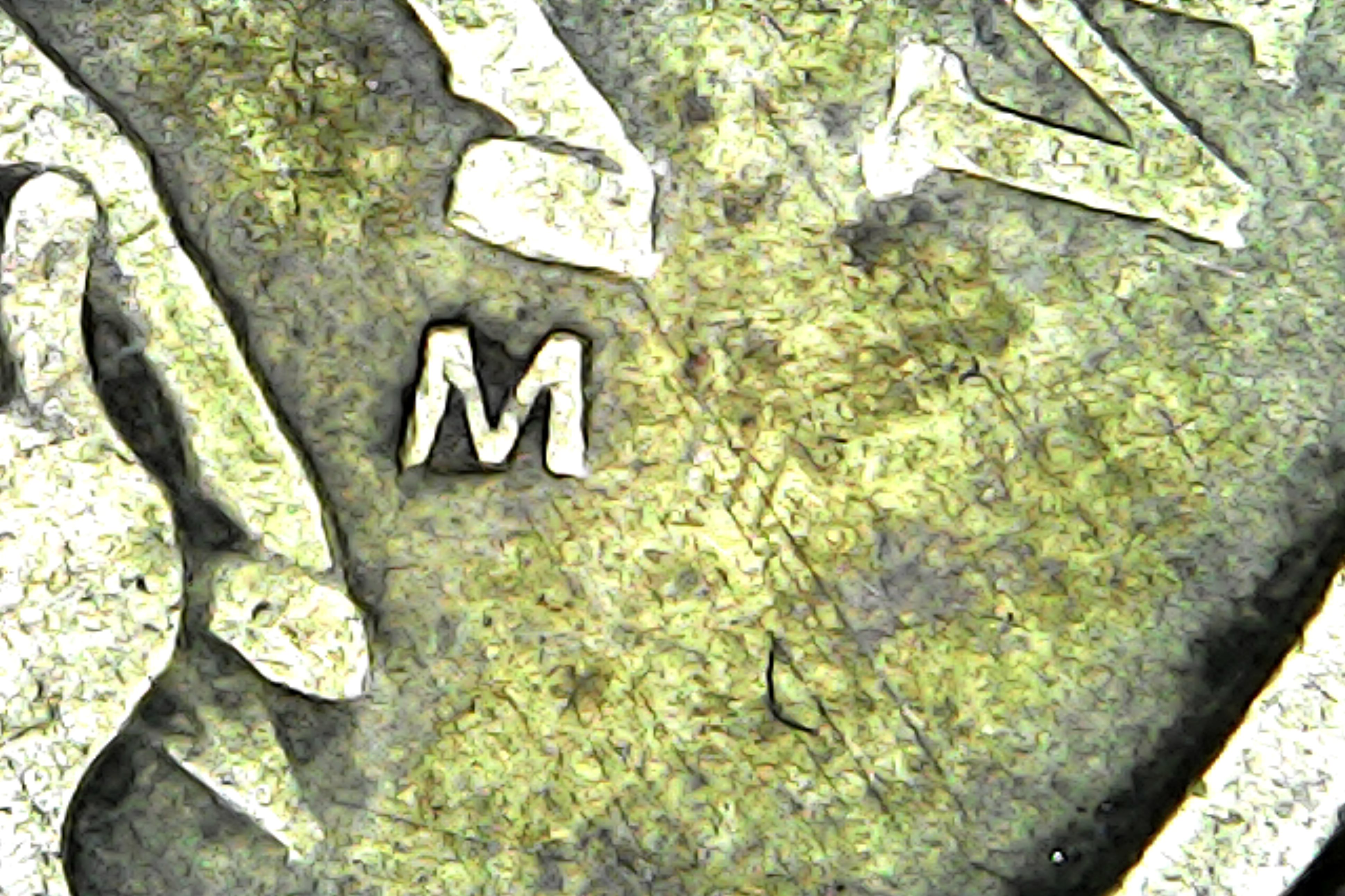 Вот ещё несколько М похожих,где левая ножка немного уменьшена как в каталоге,но смещена чуть правее и слегка повёрнута по часовой стрелке:
