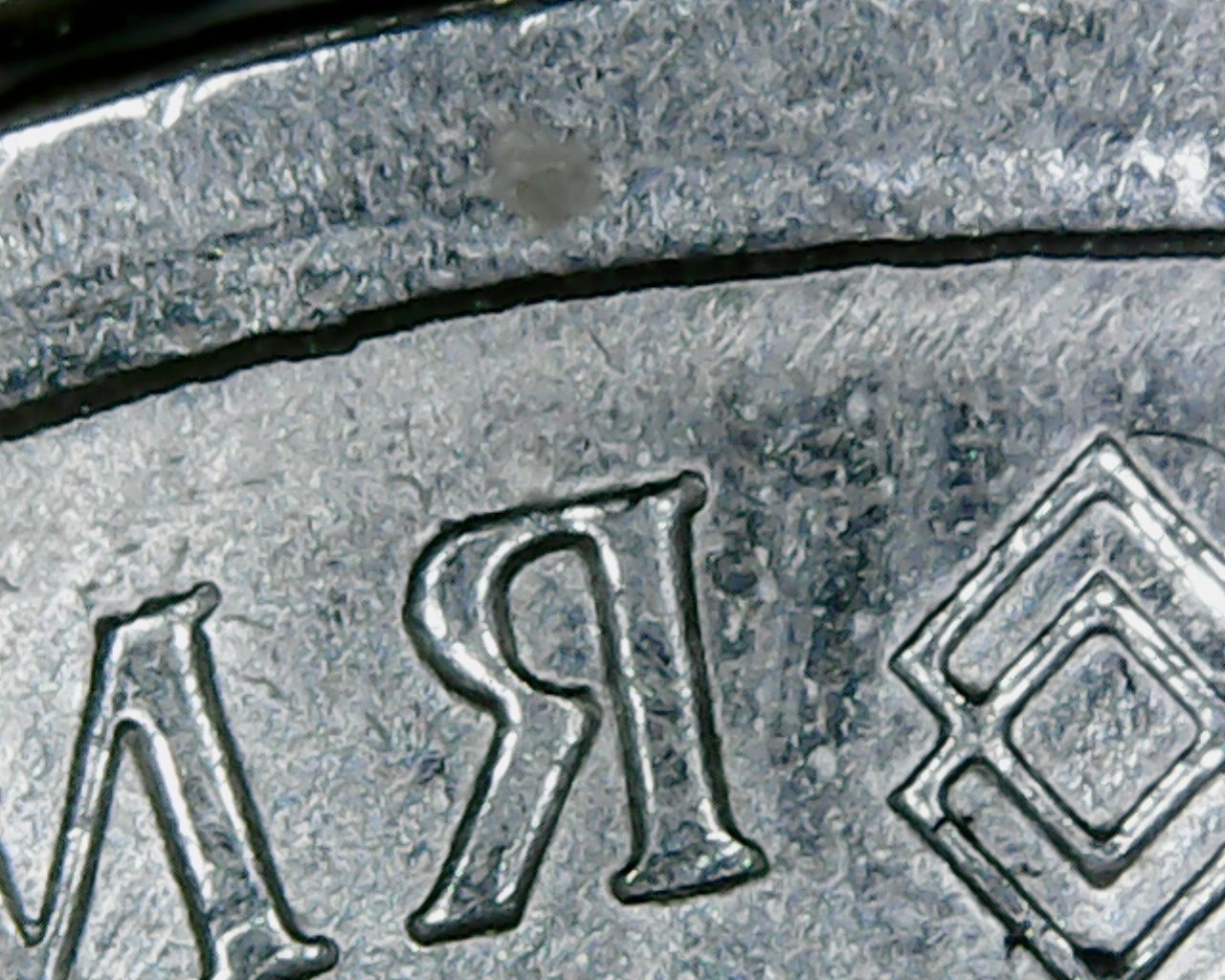 Добавлю фото с микроскопа. Надписи более отдалены от канта, по сравнению с явной А1.