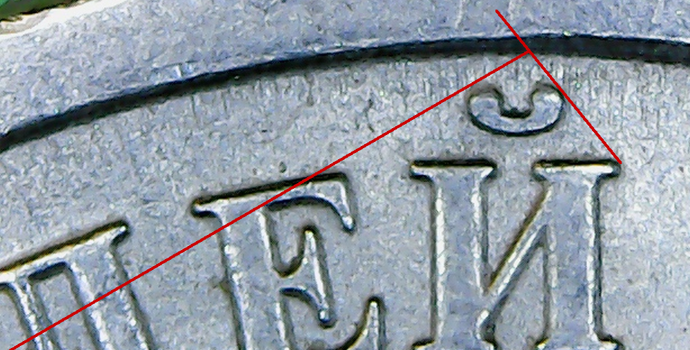 Это впервые я обсуждал здесь и выяснилось, что степень приближенности к канту никак не влияет на разновидность монеты !!!