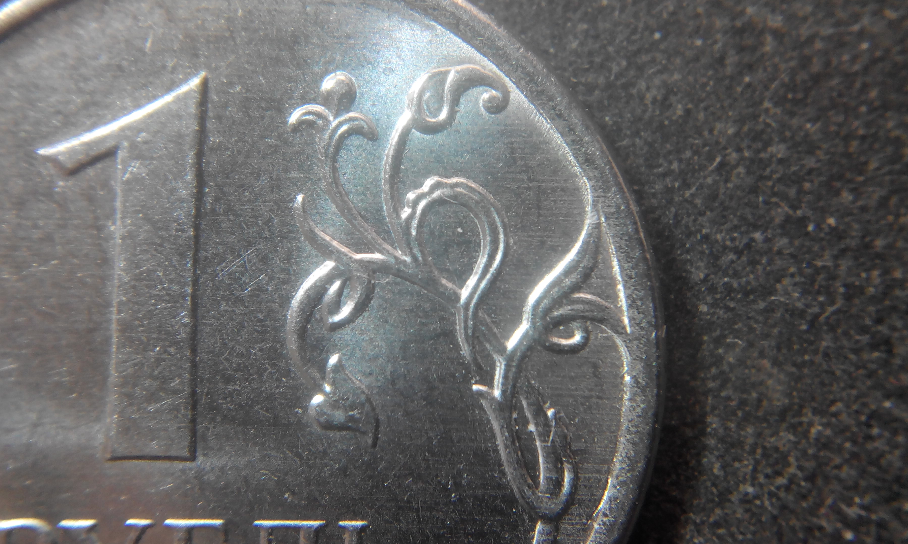 Разница в деталях изображения на мой взгляд явно присутствует, например по листьям на 6 и 9 часов, но сам размер изображения от завитка хвоста буквы У до завитка листка на 1 час как бы примерно равно у этих двух монет, а само поле предполагаемой 3.41 чуть шире чем у нижней 3.42, измерял линейкой на экране планшета, совместить изображения по тех. причинам не могу. Т.е. если данный штемпель внешне на мой взгляд похож на шт 3.41, то по размеру изображения совпадает с шт 3.42, но не совпадает по ширине поля по внутреннему периметру канта.