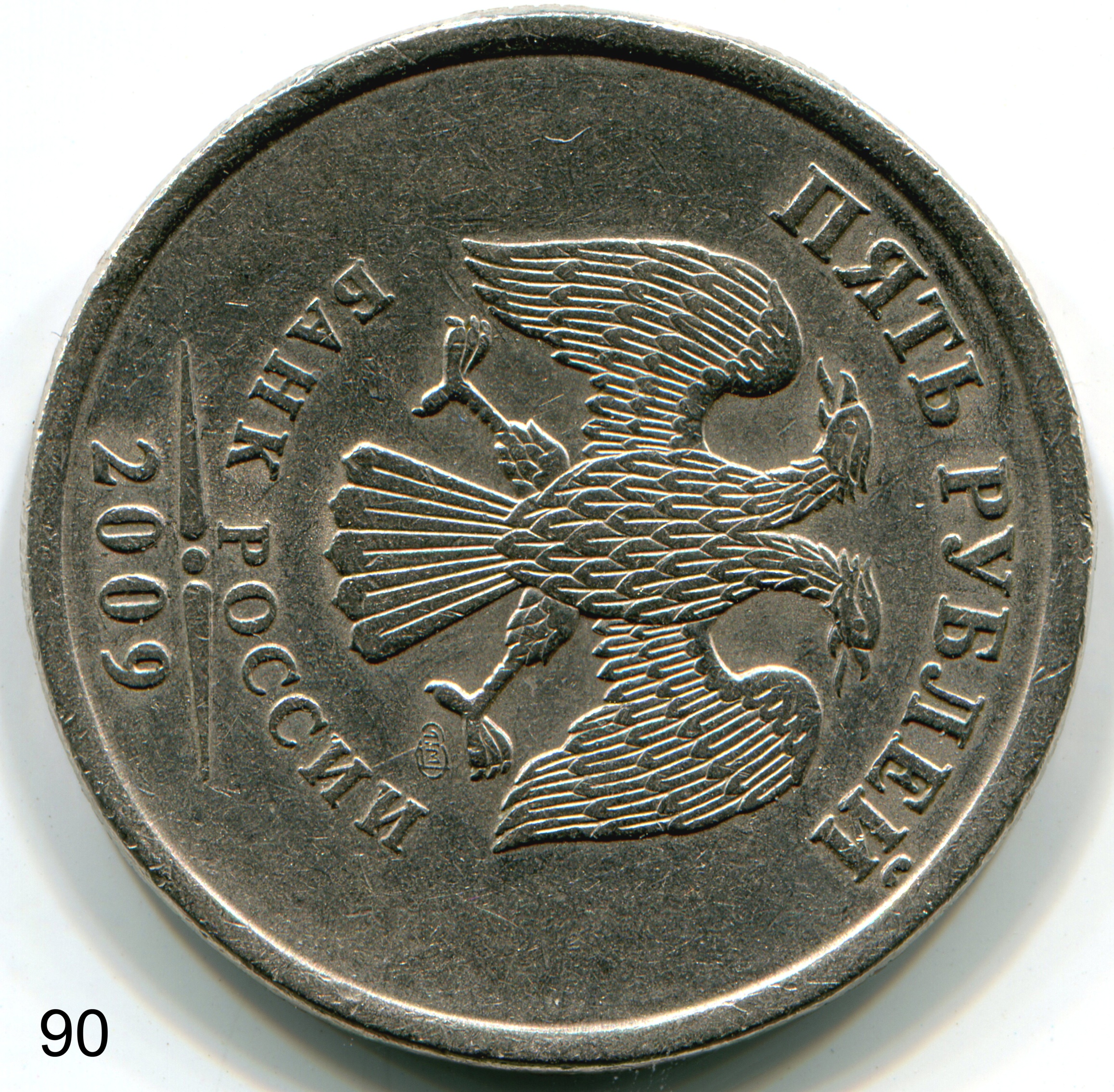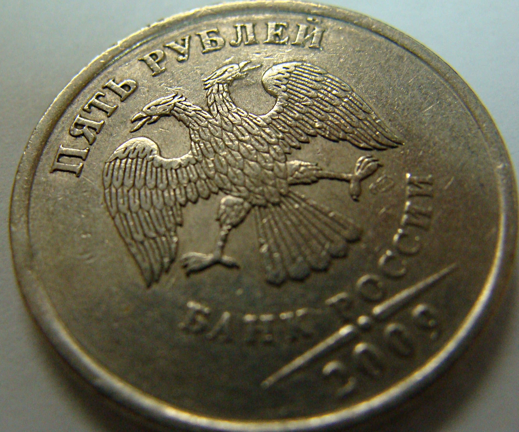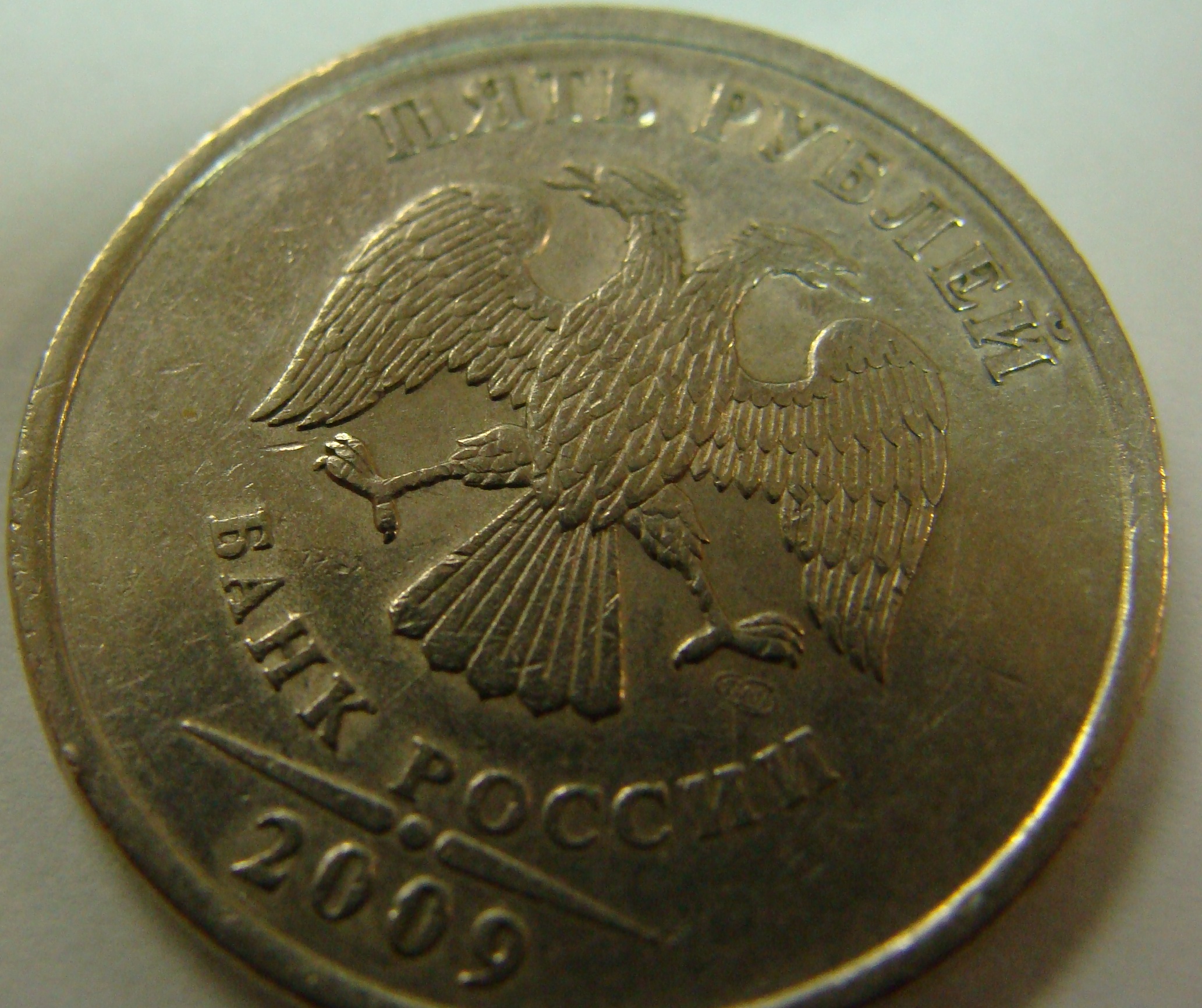 Re: 5 рублей 2009 сп немагнит - на аверсе необычное перо у орла