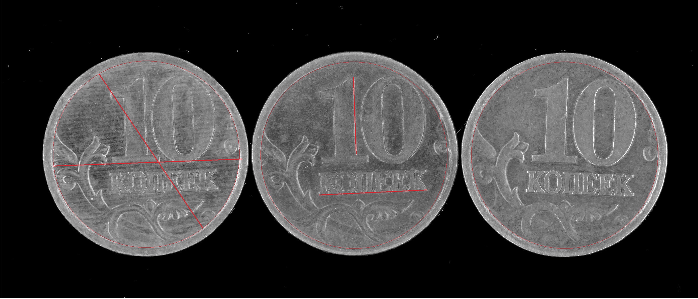 вот провел в пейнте окружность у всех трех монет одного размера... получается поле изучаемых реверсов меньше стандарта... значит кант шире? но размер изображения вроде одинаковый...