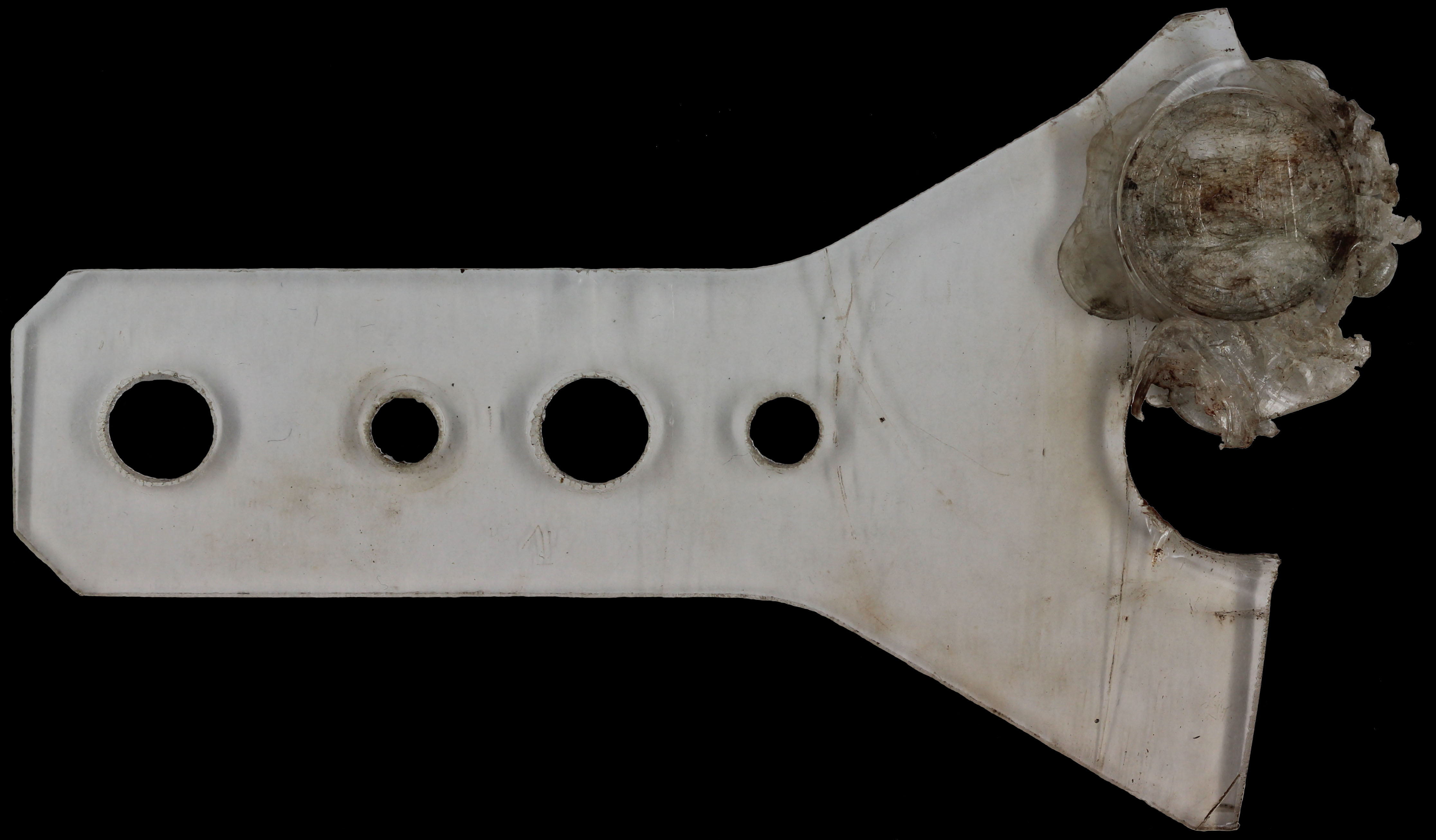 Тогда тоже покажу, как при рассинхронизации лапка попадает под удар, но уже на ММД. Материал в данном случае - монолитный поликарбонат. Все эти фото показывают возможность образования обсуждаемого брака, в случае, если попадает под удар материал попрочнее, типа закалённой стали.