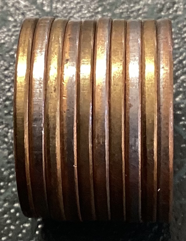 Посмотрел свои запасы на предмет подобных отличий ("гурт такой же зеркально блестящий, без видимой сердцевины заготовки").
