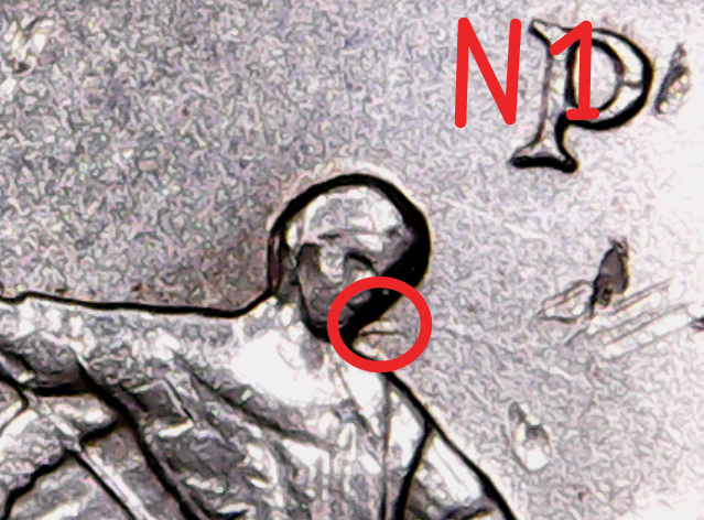 Здесь указаны наиболее заметные и сохранившиеся . Для убедительности представлены фото двух монет с разной степенью сохранности.