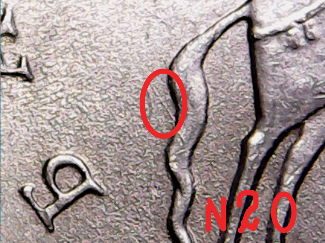 Единственная зацепка, которая видна в разной степени на всех монетах.