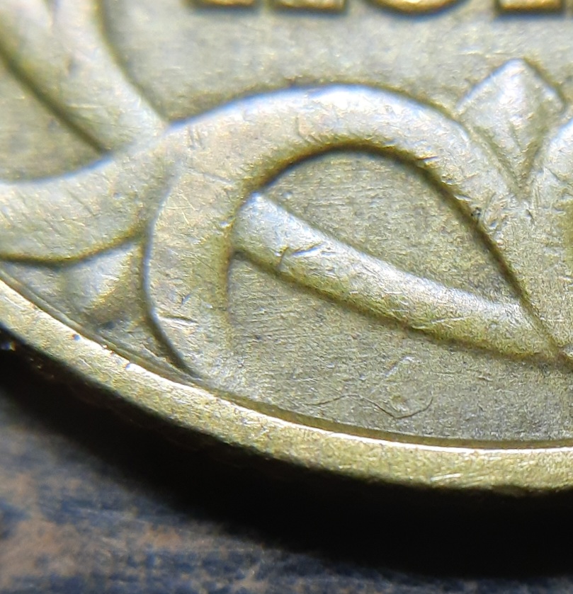Всем привет. Попалась вот такая монетка. На удар вроде не похоже.. Фото и скан прилагаю.. Или все таки удар?
