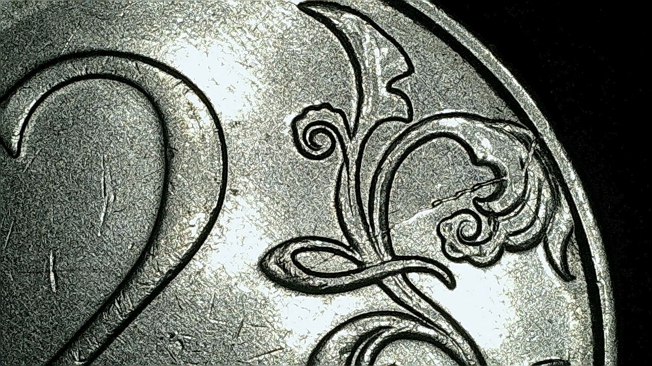 Здравствуйте! Прочитал тему и тоже решил принять участие. Монеты с таким реверсом я нашёл только две. На одной из них виден начинающийся раскол штемпеля, что привело на мысль о его разрушении в будущем. Однако, если такие монеты встречаются в разных регионах, то, как минимум такой штамп (увеличено изображение) всё же существовал, я так думаю. Также на моих монетах нет никакого поворота относительно аверса, но износ штемпеля есть, а вот кант не тонкий и сформирован хорошо.