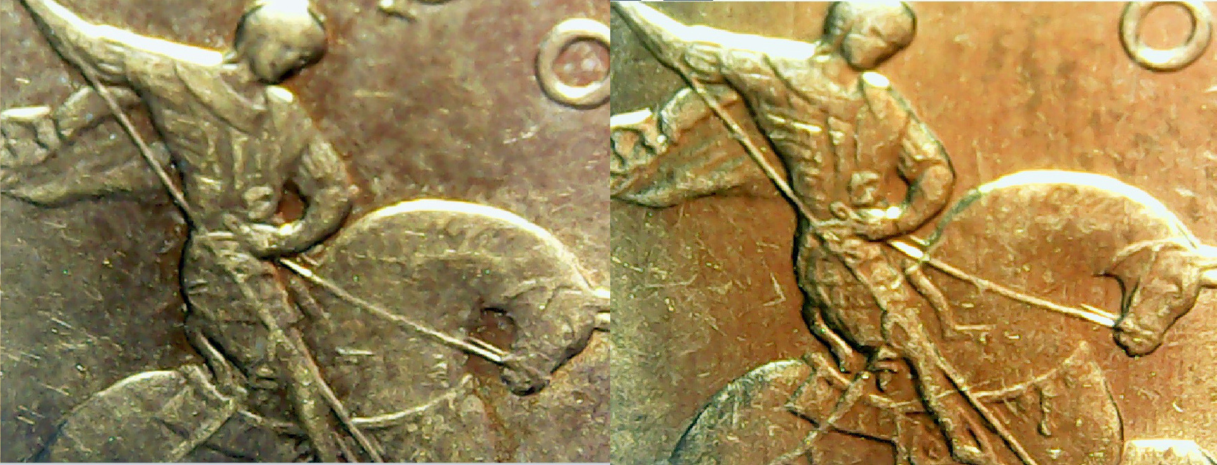 Сергей, да, такие А1 попадаются - те, что с более прочеканенным рельефом. Но принципиальная разница между ней и неподшлифованной А2 - это то, что на А2 нижний повод уходит выше и у руки всадника расстояние между верхним и нижним поводами на Б2 меньше. Другое дело, что глазом такие отличия уже не углядеть.