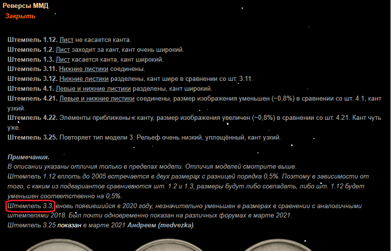 В каталоге 1 рубль реверсы ММД исправить шт.3.3 на 4.1 (судя по логике!):