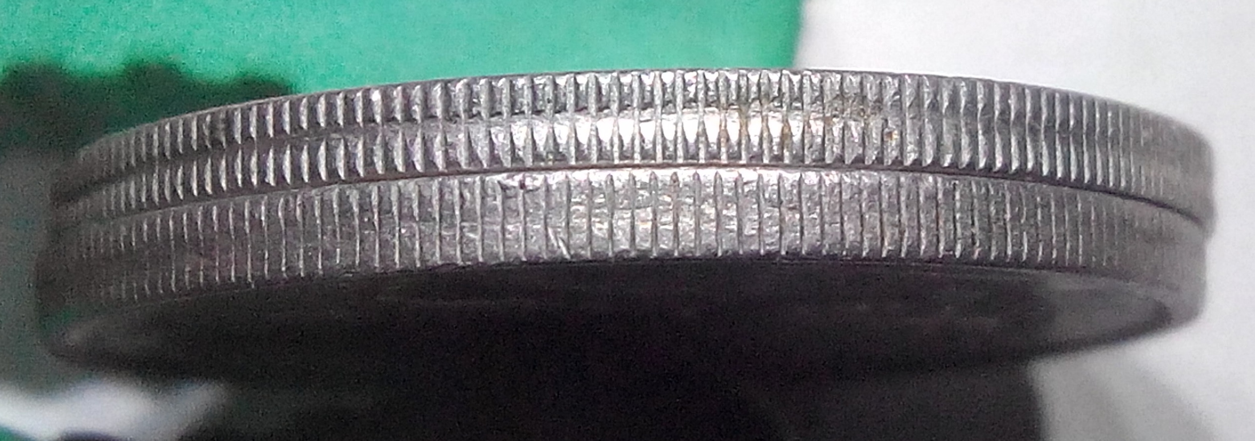 А "ласточкин хвост" на гурте возникает из-за неправильного зазора между пуансоном и матрицей. Если ничего не путаю, то возникает при увеличенном зазоре. На десятках 1992 совершенно обычное явление.
