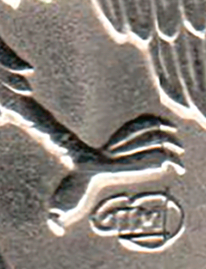 Здравствуйте. Непонятно это знак смещен в лево или лапка орла крупнее. А также в дате 0 и 3 отличаются от обычной монеты?