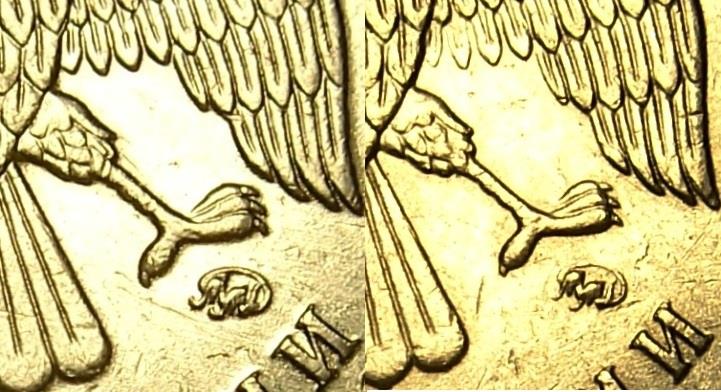 Вот как выглядит один и тот же штемпель. Определённый участок монеты.