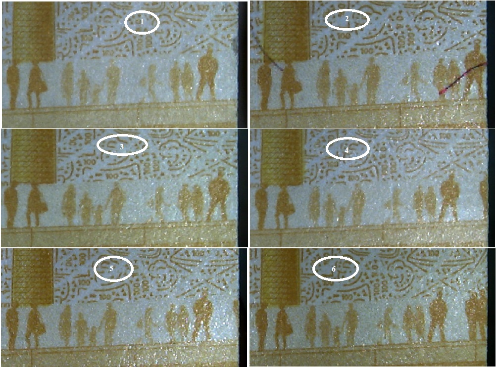 Любителям бонов!. Как-то на сайте показали брак на сто рублевке Ржев - 24 человечка передвигаются по дорожке пешеходной зоны парка Зарядье и справа, в конце обреза купюры, показана какая-то часть туловища 25 человека. Автор указал что это брак и оценил его в 500 ооо руб. Не хило. Посмотрел свои и набросал несколько фрагментов движения 24 человека к краю обреза. Начиная с №1, 3 происходит смещение его к обрезу купюры. №2 приблизился к краю(есть еще исчезновение руки). №4 появилась половина 25 человека. №5 осталась какая-то часть тела 25 чел. Ну и в №6 появились 26 человек. Не знаю будет ли интересен этот брак, про цену молчу. Если есть у кого такие или лучше поделитесь.