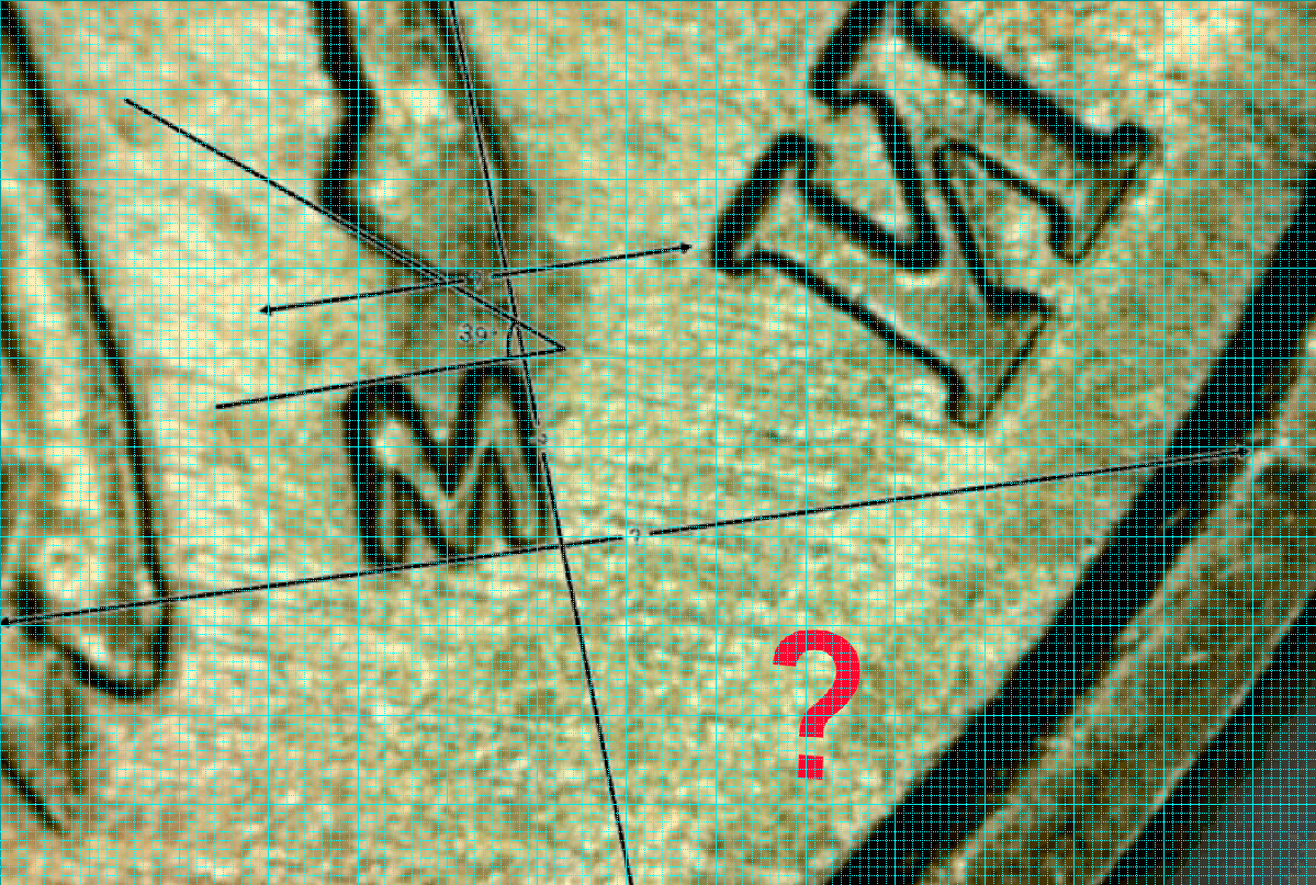 Если не очень убедило, посмотрите это же наложение, только с координатной сеткой, обратите внимание на чёрные контуры изображения (высота рельефа), это тоже часть изображения деталей, смотрите - всё сразу оказывается на своих местах, кроме вашей разлиновки.