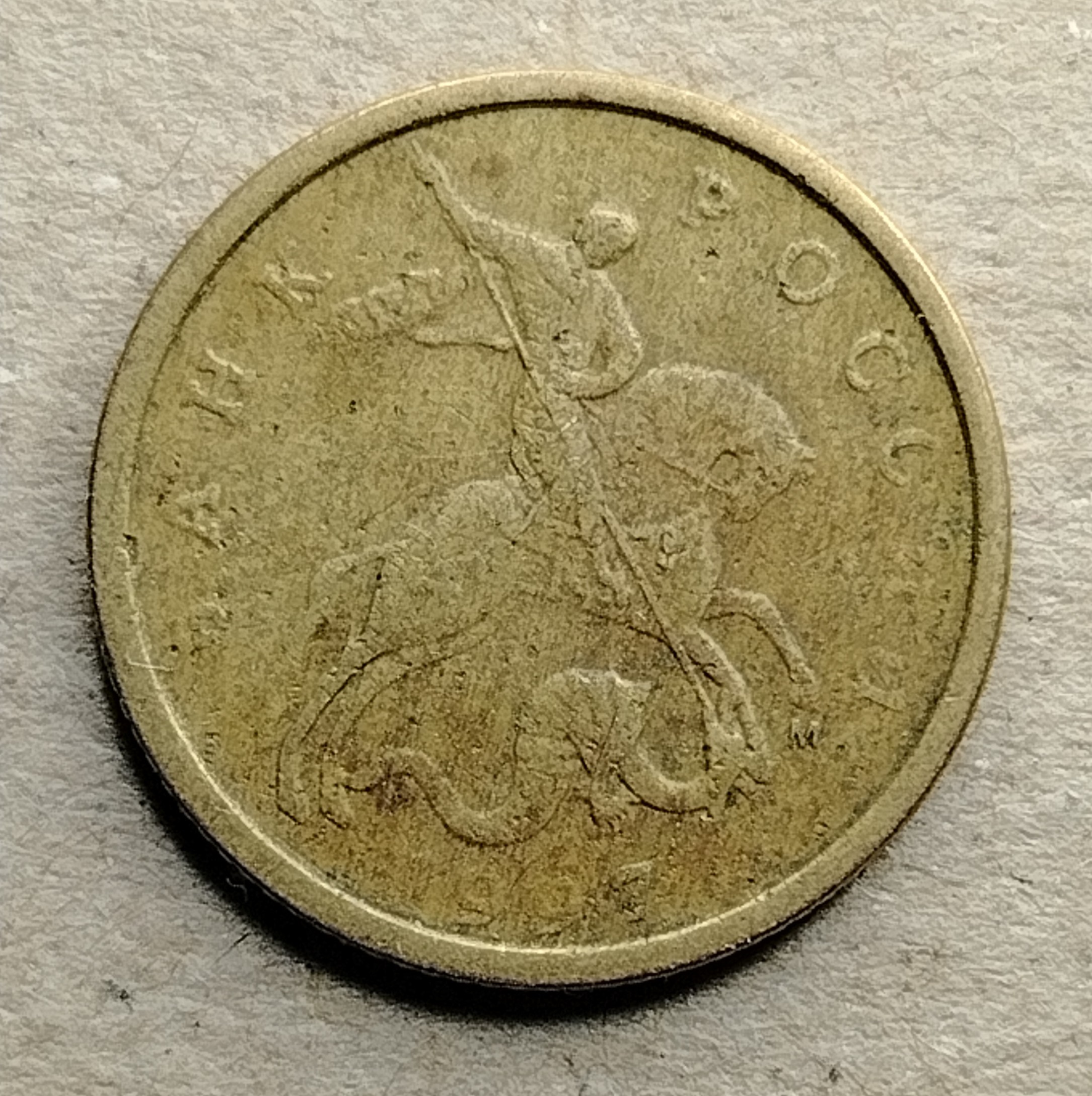 Попалась такая монетка,на аверсе которой изображение размыто и плохо что видно,но М чётко просматривается.Интересно,это гравировка или нет?
