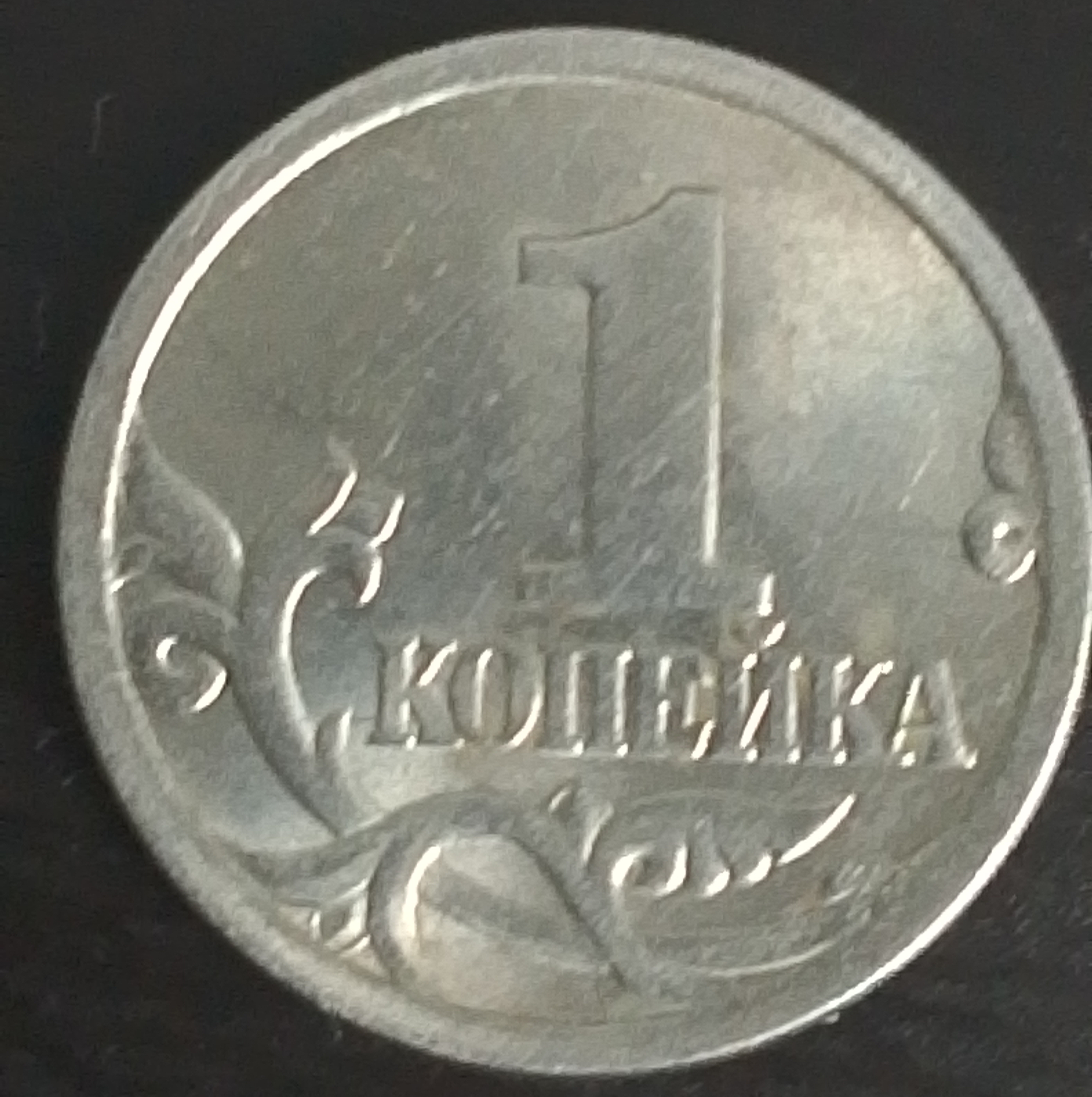 А вот на реверсе с царапиной под единичной беда- она не так выражена,как на других монетах,которые были выложены в форуме,видна плохо,но вот под микроскопом она видна лучше и на своём месте!!!Состояние копеечки может просто не очень :oops: и поэтому так?